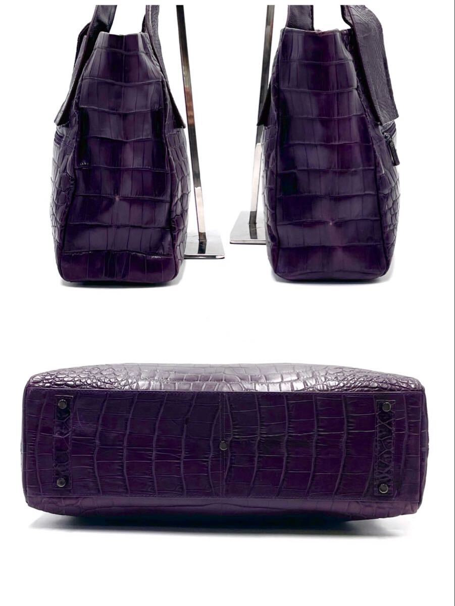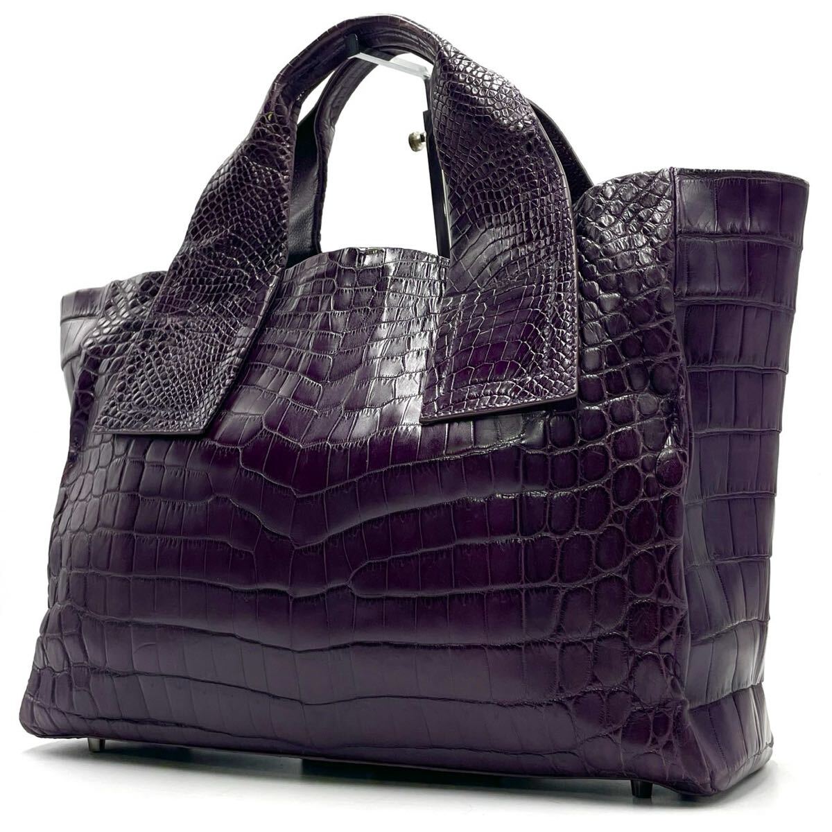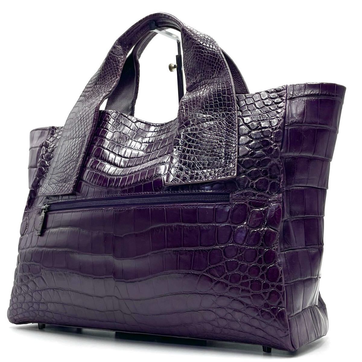 パープル◎定価45万!!! マットクロコ トートバッグ メンズ A4収納 センター取り ビジネス クロコダイル ブリーフケース 紫 鰐革 リアル