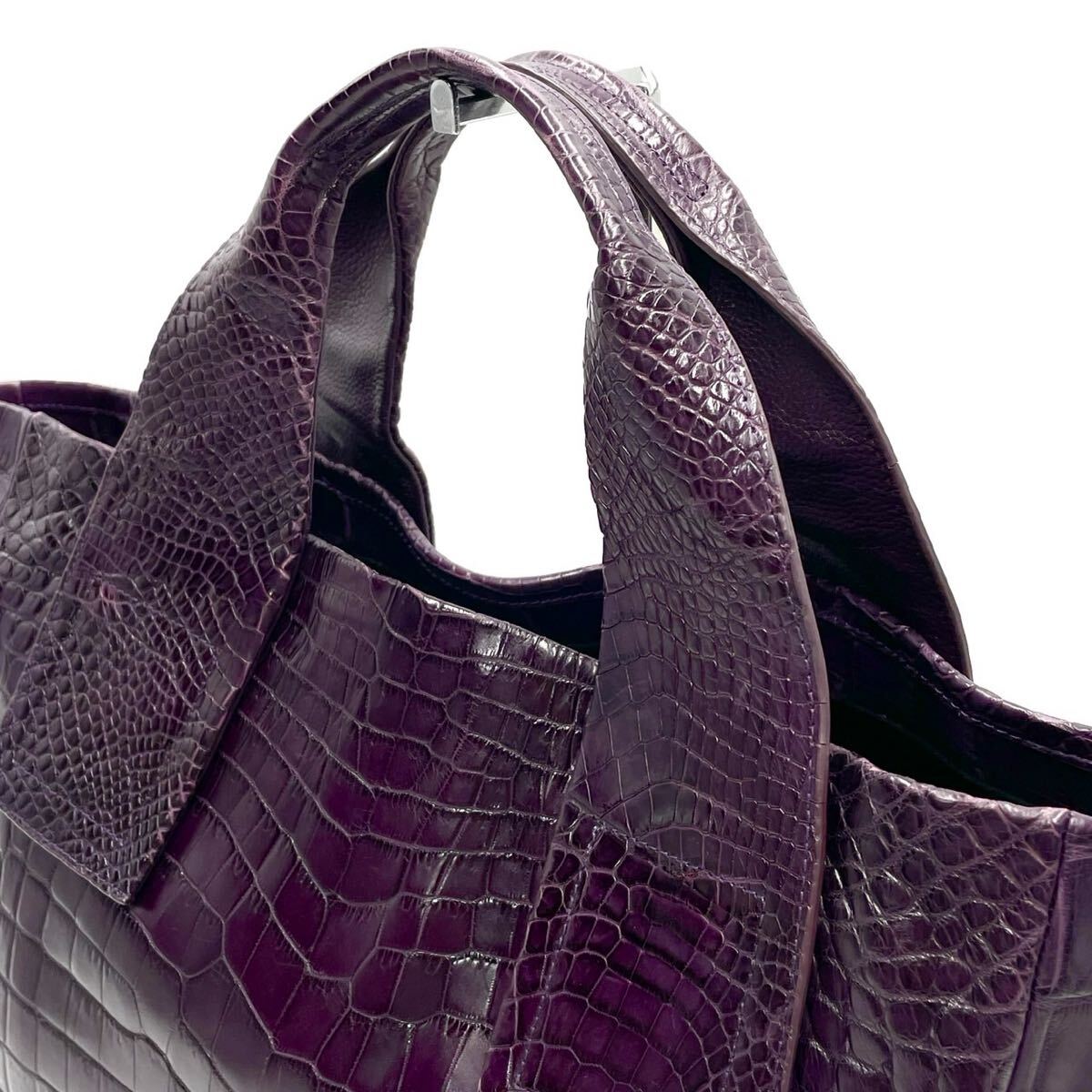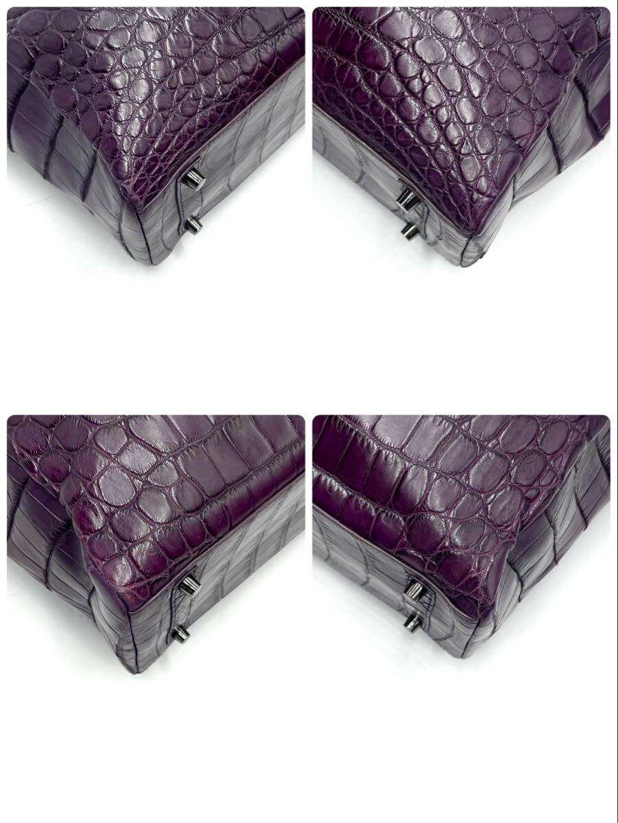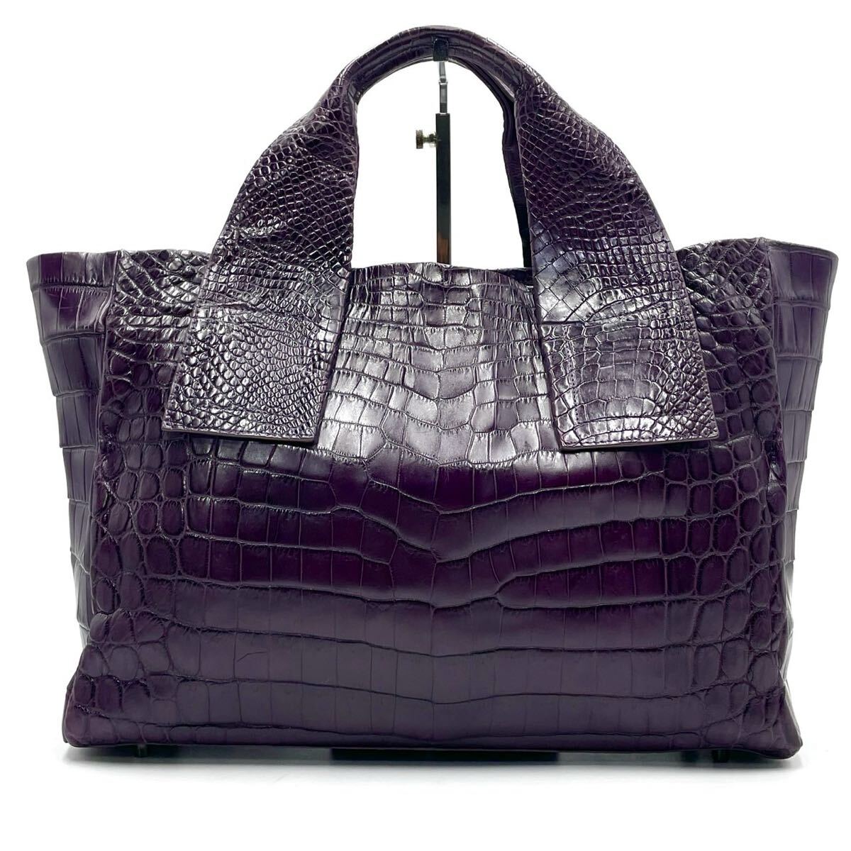 パープル◎定価45万!!! マットクロコ トートバッグ メンズ A4収納 センター取り ビジネス クロコダイル ブリーフケース 紫 鰐革 リアル