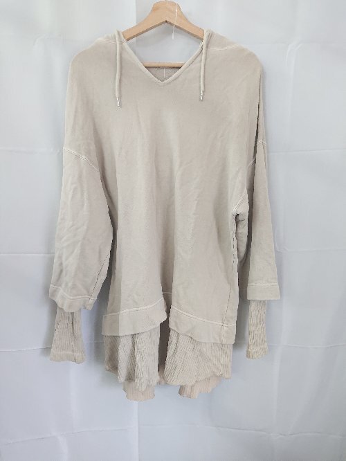 ◇ ⊇ ジーナシス レイヤード 長袖 プルオーバー パーカー サイズF ベージュ系 レディース E