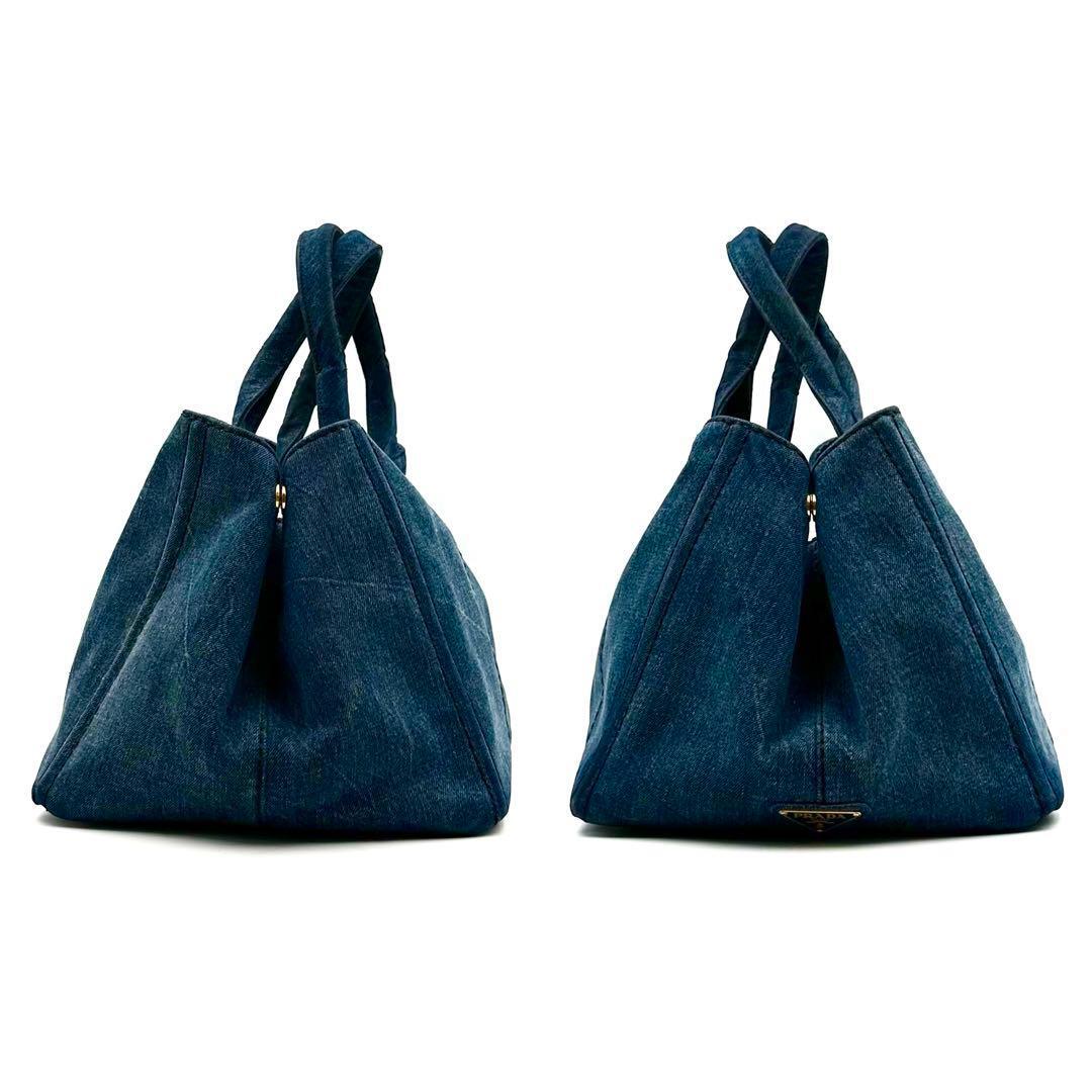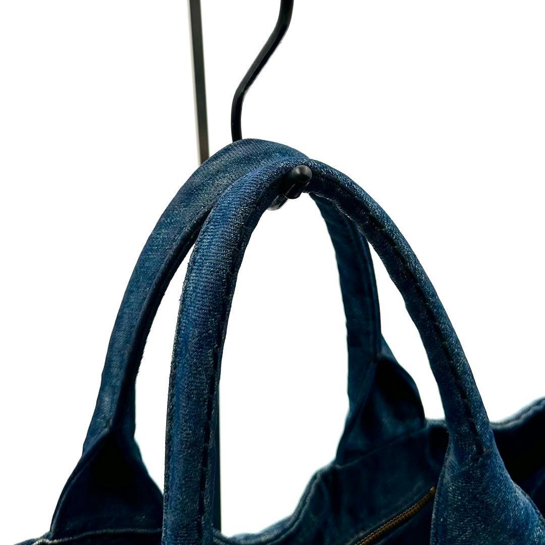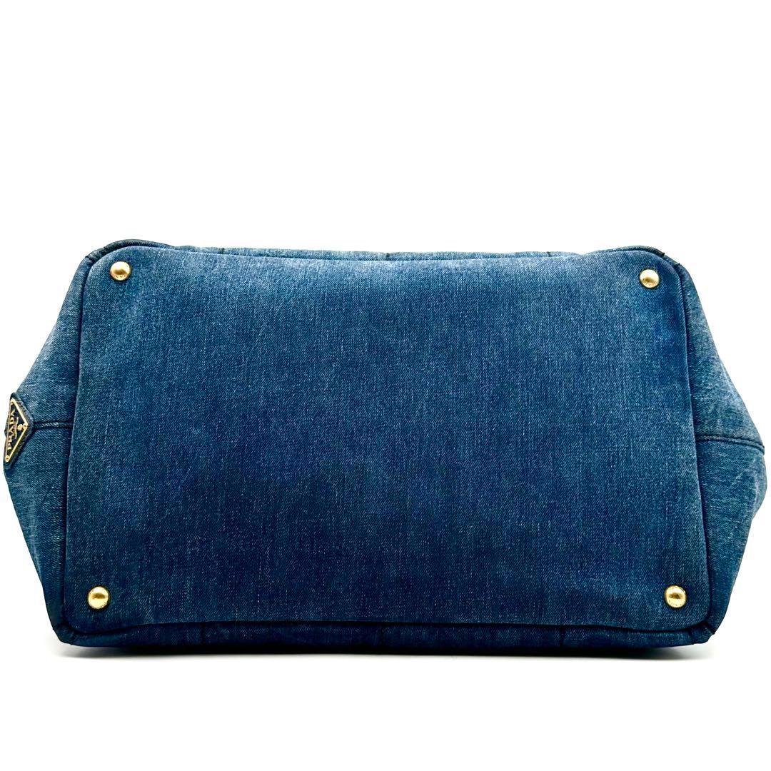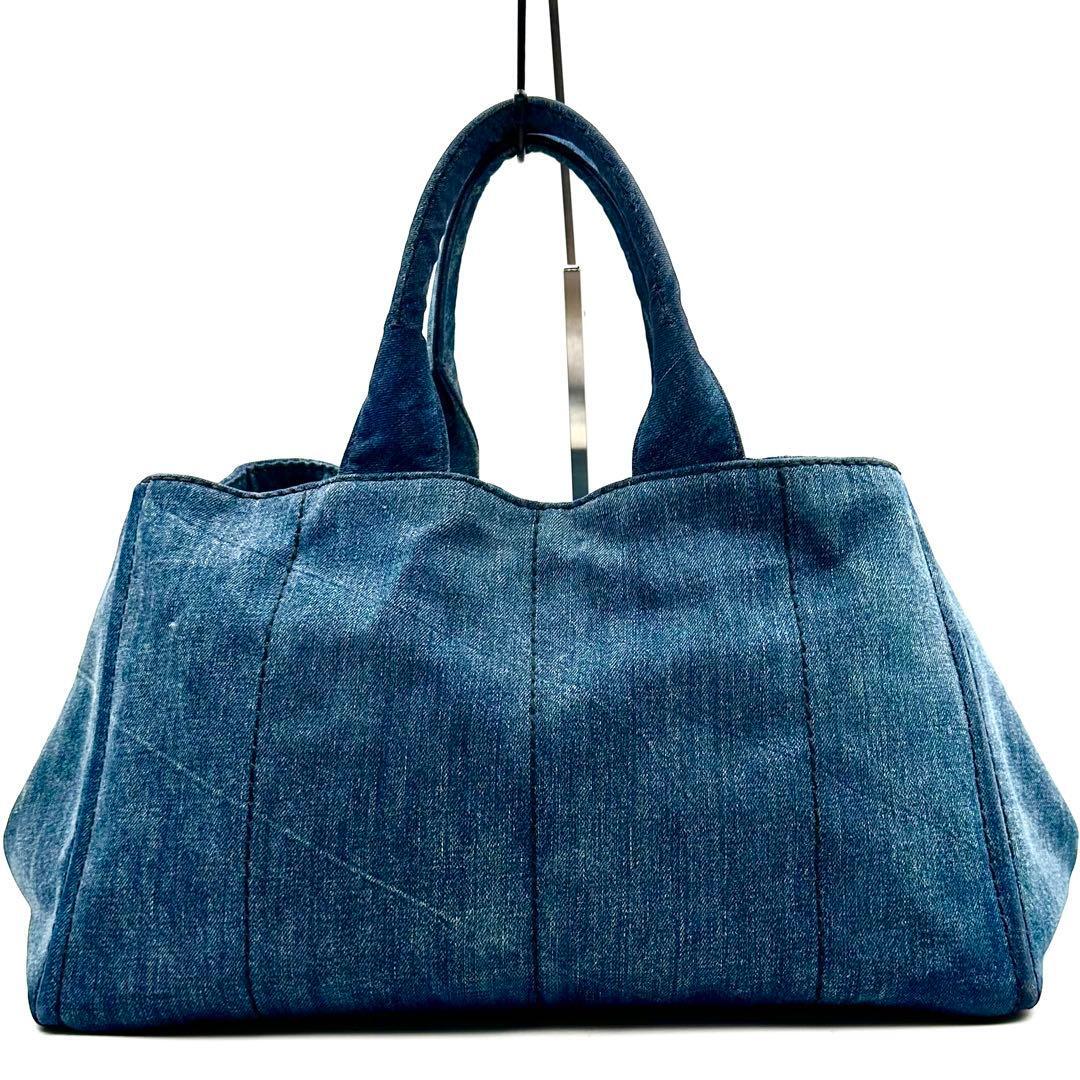 《美品》PRADA プラダ カナパM デニム 三角ロゴ トートバッグ A4 インディゴブルー