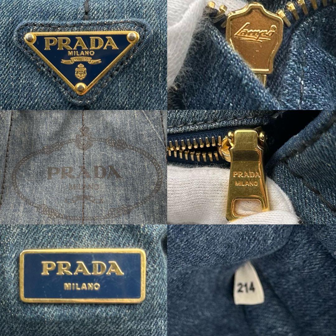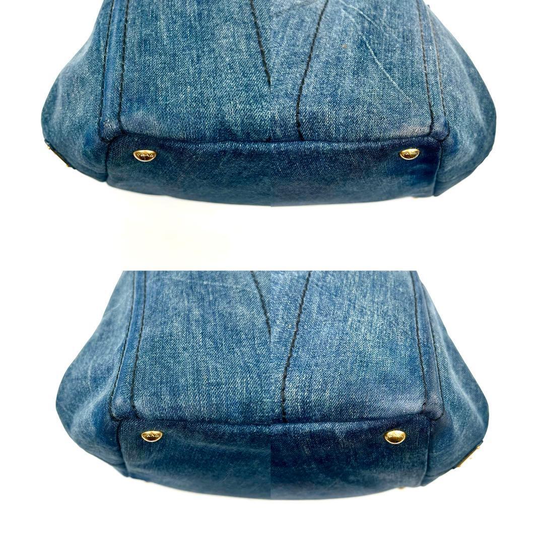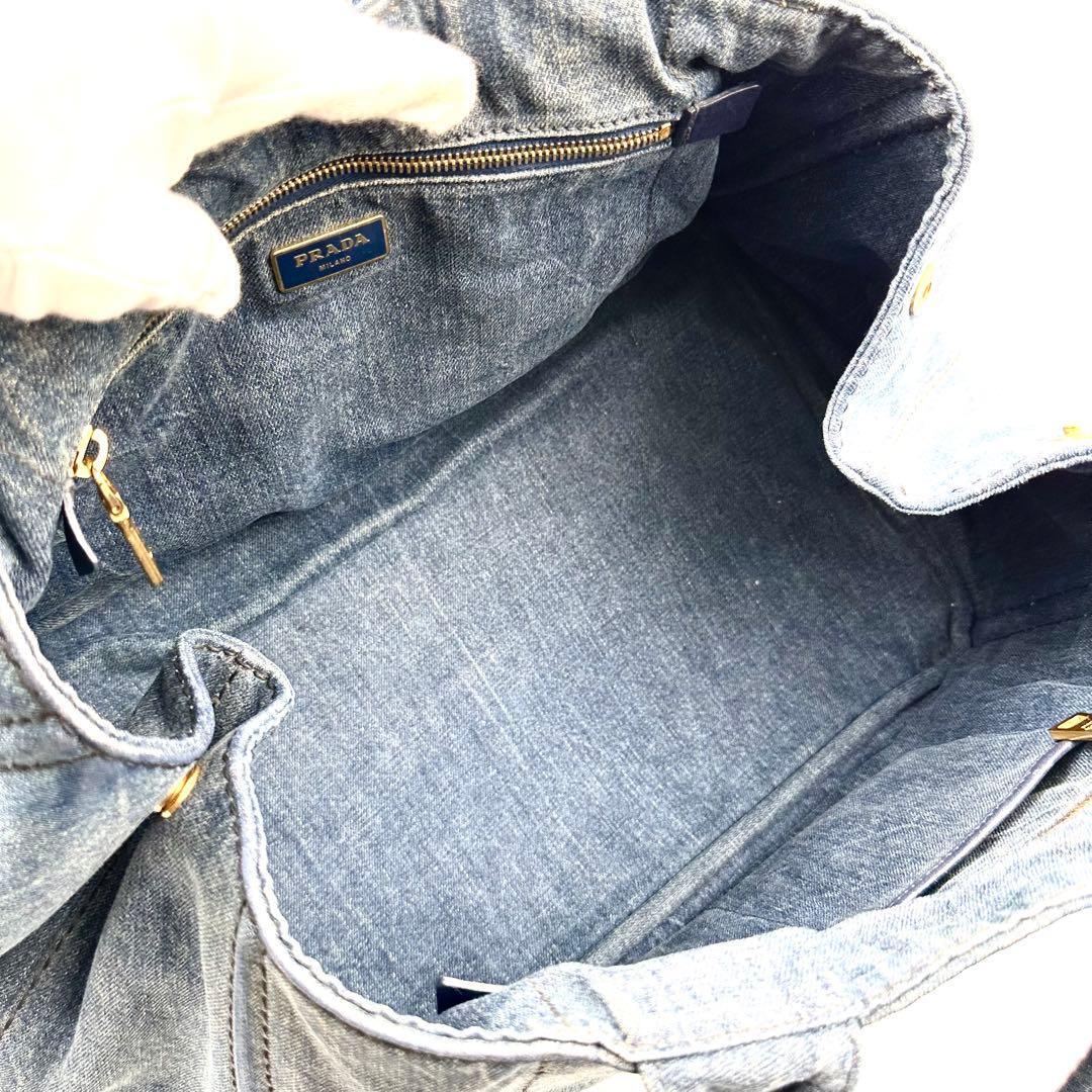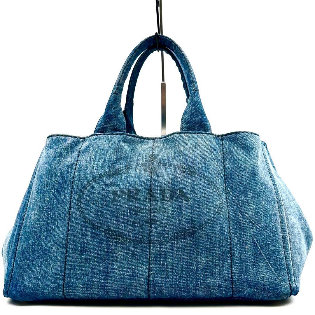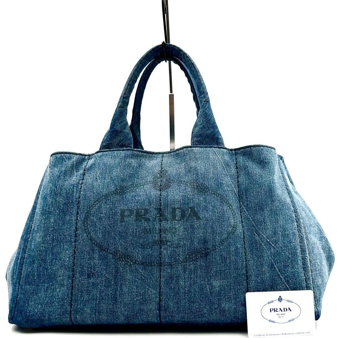 《美品》PRADA プラダ カナパM デニム 三角ロゴ トートバッグ A4 インディゴブルー