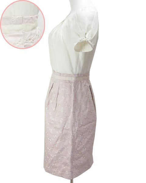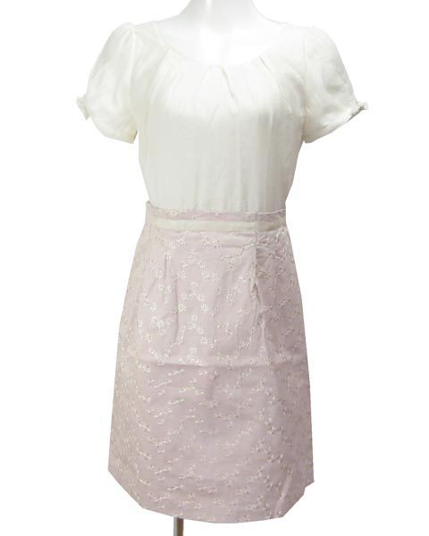 | コメント | 優しいお色使いの上品でフェミニンなワンピース。 スカート部分の光沢のある刺繍が全体に入っていて 華やかな雰囲気。 お出かけスタイルにおすすめです。 |