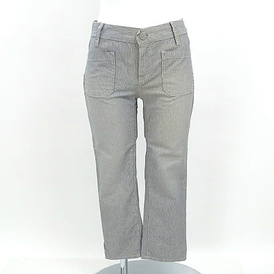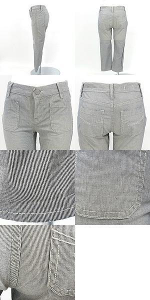 | ギャップのさわやかなストライプパンツが入荷いたしました! 白と紺のストライプが大人マリンな印象を与えてくれます☆ 丈も七部丈なのでロングシーズンお使いいただけます♪ 生地の特性上、ヒップ部分に色あせが感じられ、右ポケットや裾に茶色い小さな薄シミが、 ヒップ部分にも薄シミが数箇所あります。 実寸 ウエスト約68cm ヒップ約90cm 股上約21cm 股下約54cm 【サイズ】:(00) 【素 材】:(綿99% ポリウレタン1%) 【 色 】:(白×紺) 【程 度】:(B) **管理番号 20110902-004 299 049 ** | ||||