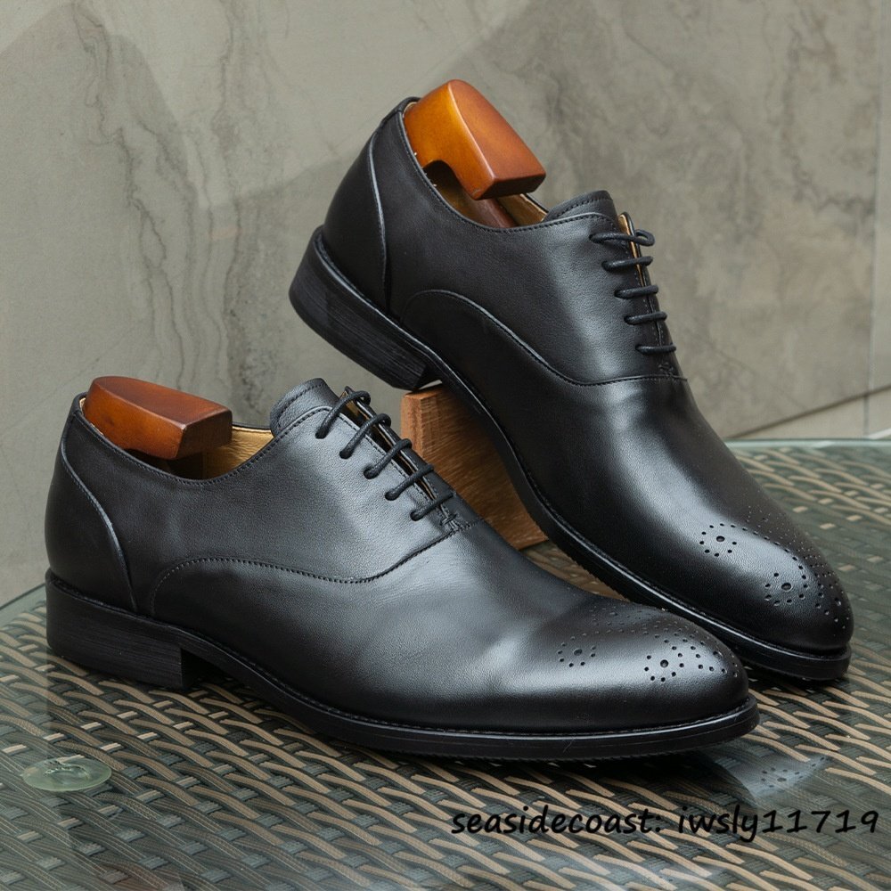 最高級★ビジネスシューズ 本革 ドレスシューズ 職人手作り レザーシューズ メンズシューズ 牛革 紳士靴 革靴 イギリス風 ブラック 27.5cm