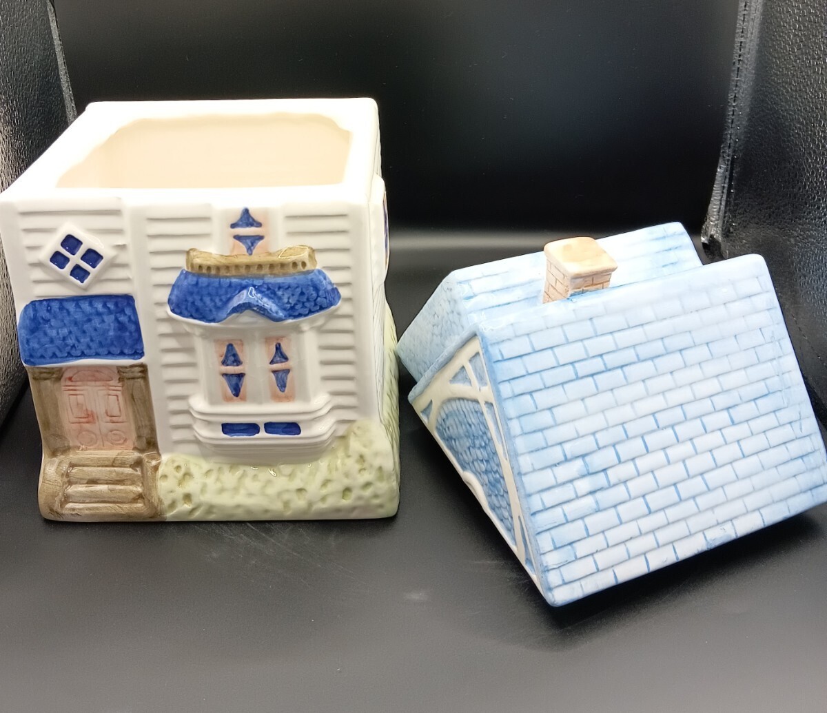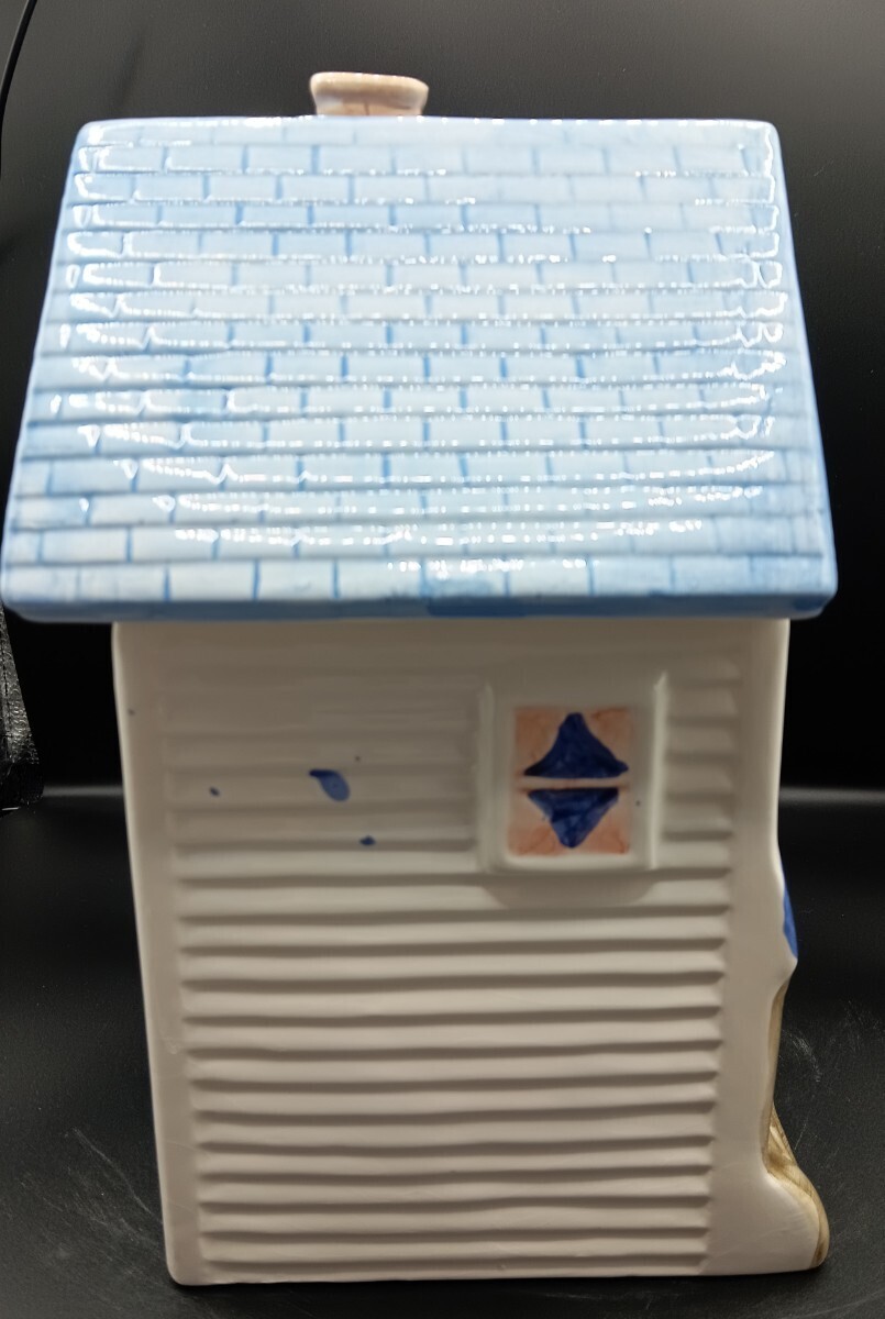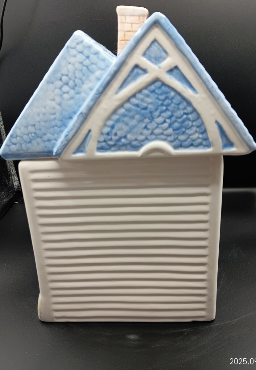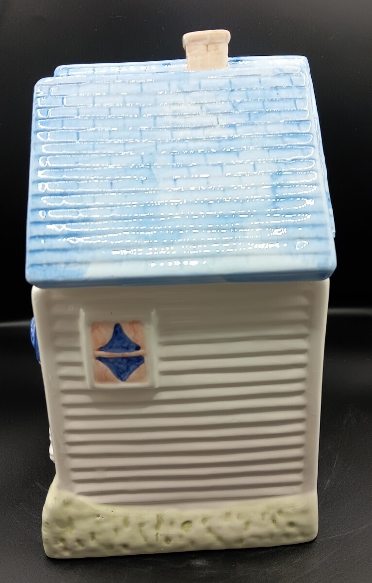 ビクトリアンハウス型クッキージャーです。屋根の部分が蓋になっており、中にクッキーなどを収納出来ます。