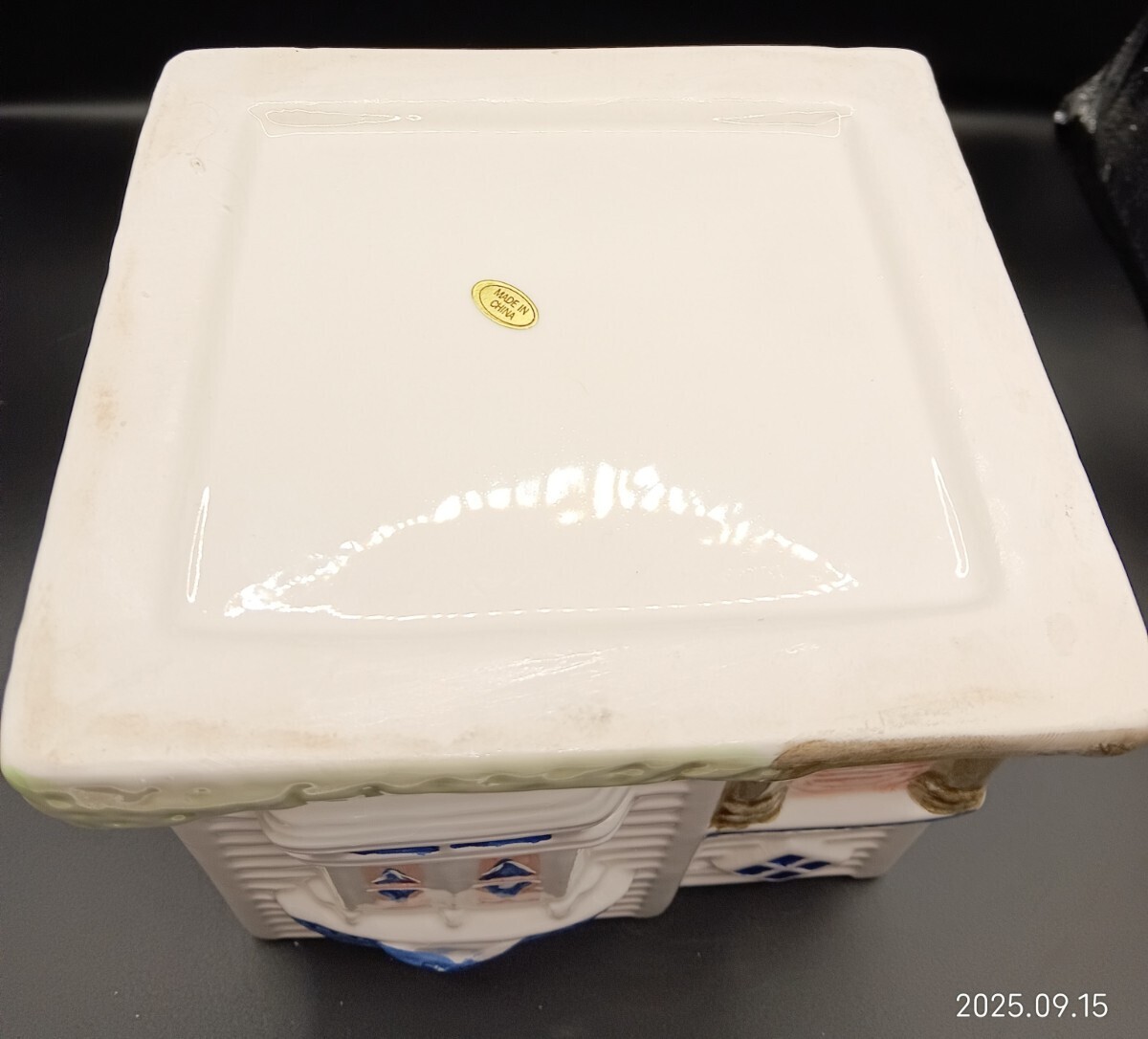 写真⑨では分かりづらいですが、蓋(屋根)を取った内側に、最初からごく小さな黒点1箇所と、指で触ると微かに触れる出っ張り1箇所があります(見た目では殆ど判らず使用に支障なし)