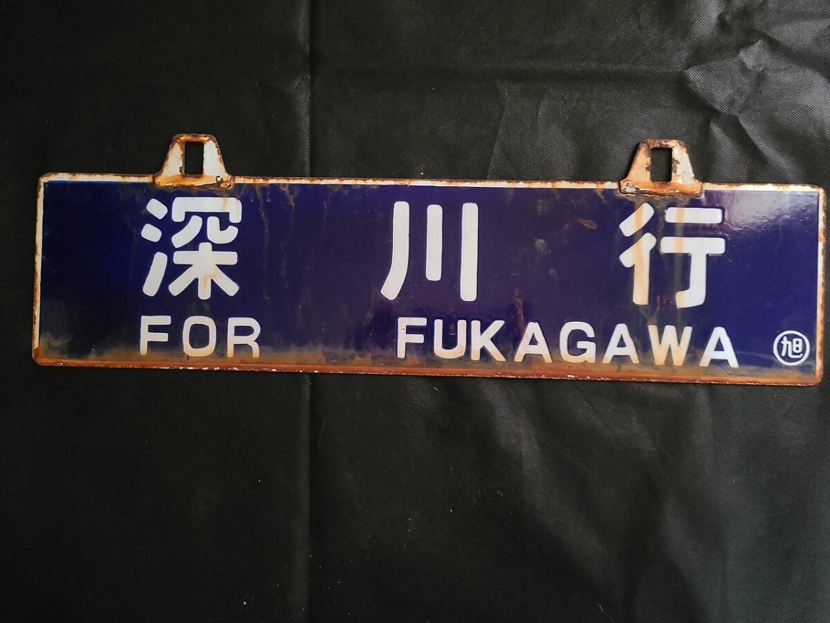 【行先方向板】深川行×朱鞠内行 〇旭【掘文字 ホーロー リベット 吊り下げ】