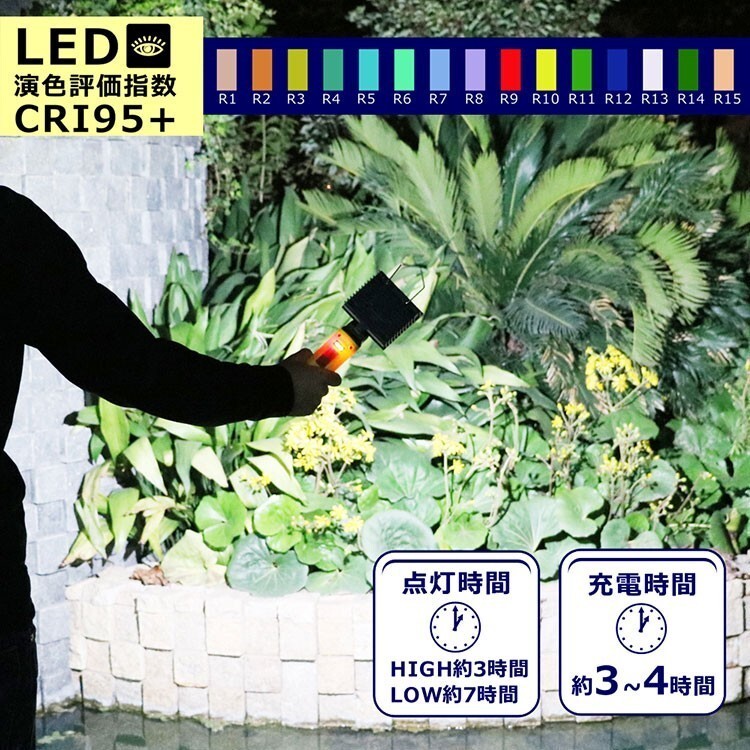 | 充電器規格 | 入力規格:AC100V~240V 出力規格:5V 1.2A | 点灯時間 | LOW:約7時間以上 HIGH:約3時間以上 |