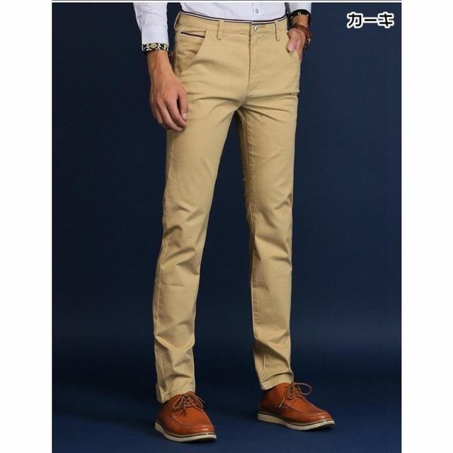 おしゃれ シンプル ロングパンツ メンズ ボトムス 通学 通勤 カジュアル ビジネス かっこいい無地 カーキ サイズ29