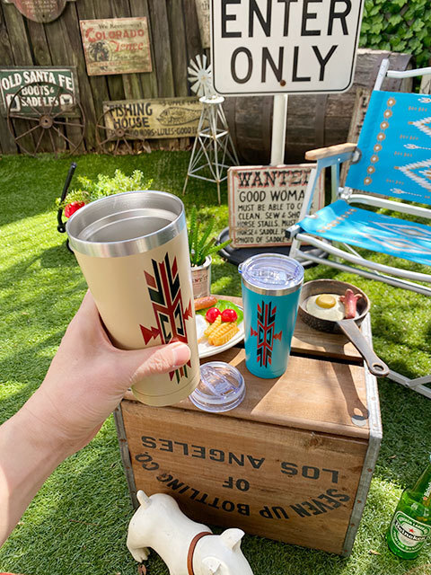 こういうタンブラーってありきたりな単色のヤツばかりだから、ネイティブパターンって新しいし、テーブルに置いた時も映えるから写真撮る時だってカッコイイの!
