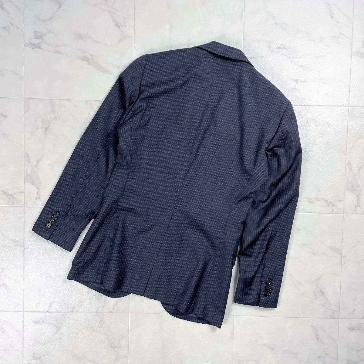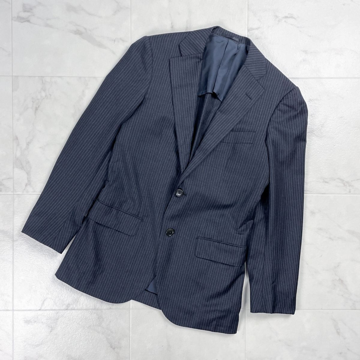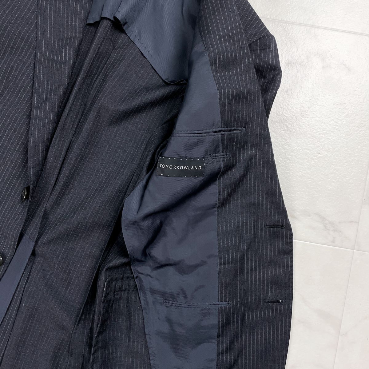 美品 TOMORROWLAND トゥモローランド ゼニア ウール100% ストライプテーラードジャケット 背抜き メンズ ブラック 黒 サイズ44*GD1053