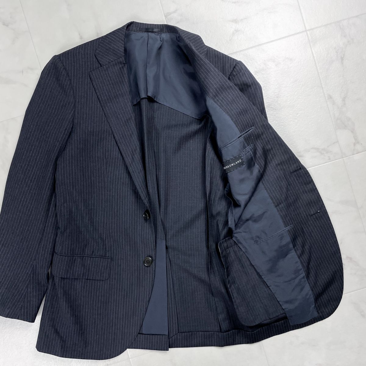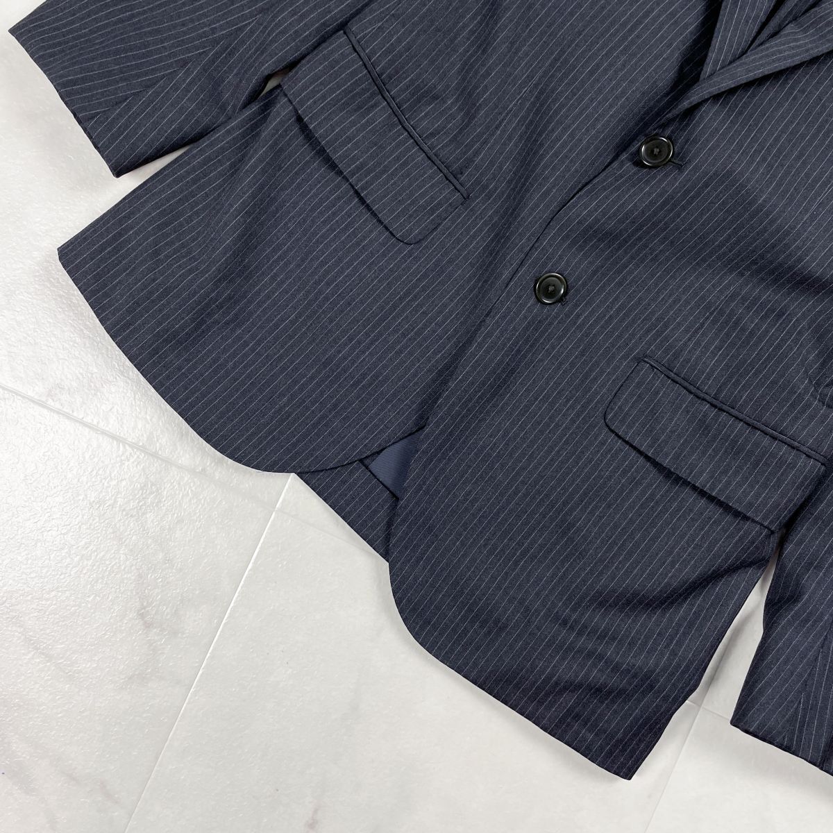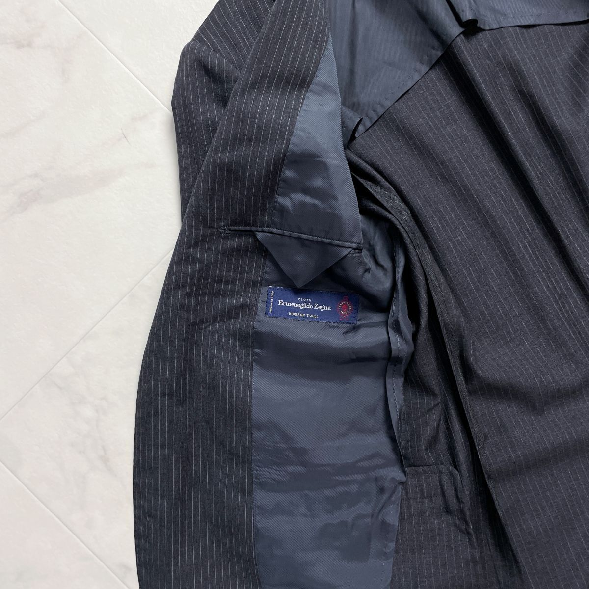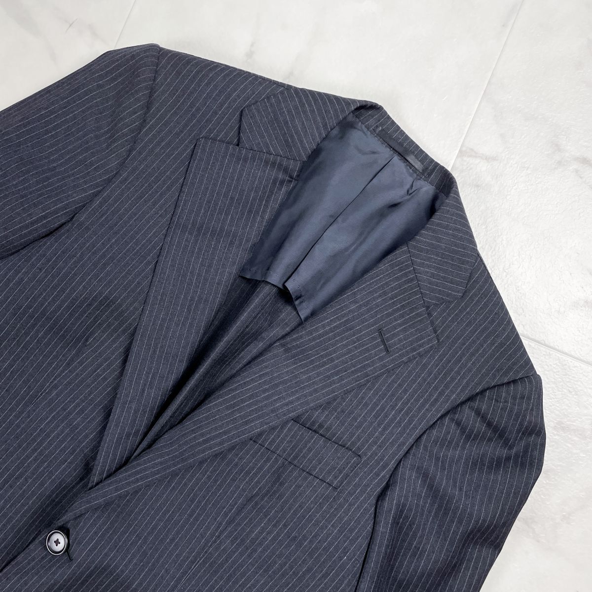 美品 TOMORROWLAND トゥモローランド ゼニア ウール100% ストライプテーラードジャケット 背抜き メンズ ブラック 黒 サイズ44*GD1053