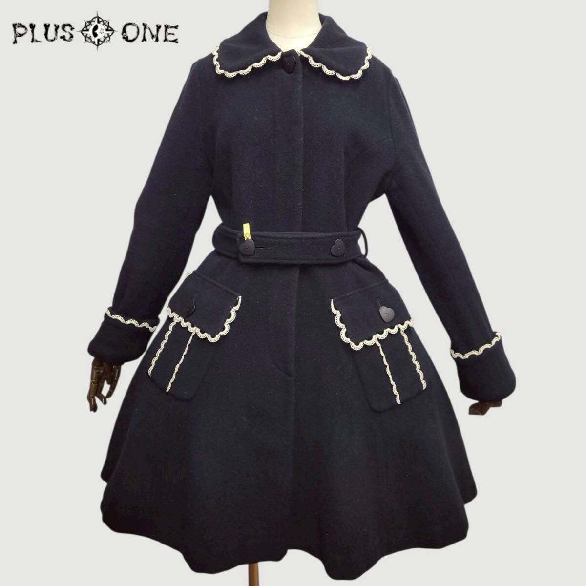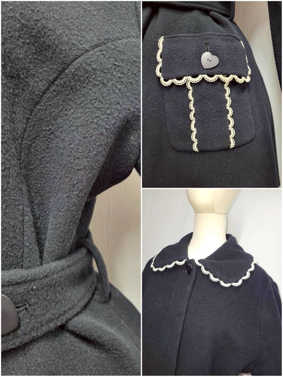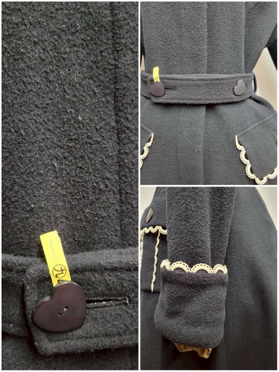 ○レースの縁どりとハート型のボタンが可愛いコートです