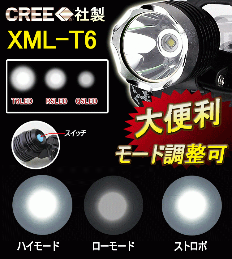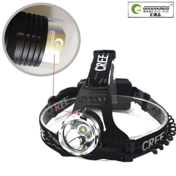 GOODGOODS LEDヘッドライト CREE 高輝度 1800Lm ヘッドランプ 作業用 アウトドア 登山 自転車 夜釣り 倉庫 防災 HL80