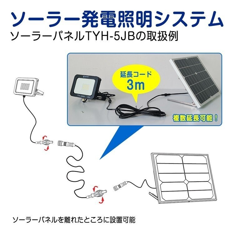 ソーラーライト 3m延長コード TYH-3M TYH-30WA TYH-20WE TYH-34DW TYH-50WK TYH-G5A等対応