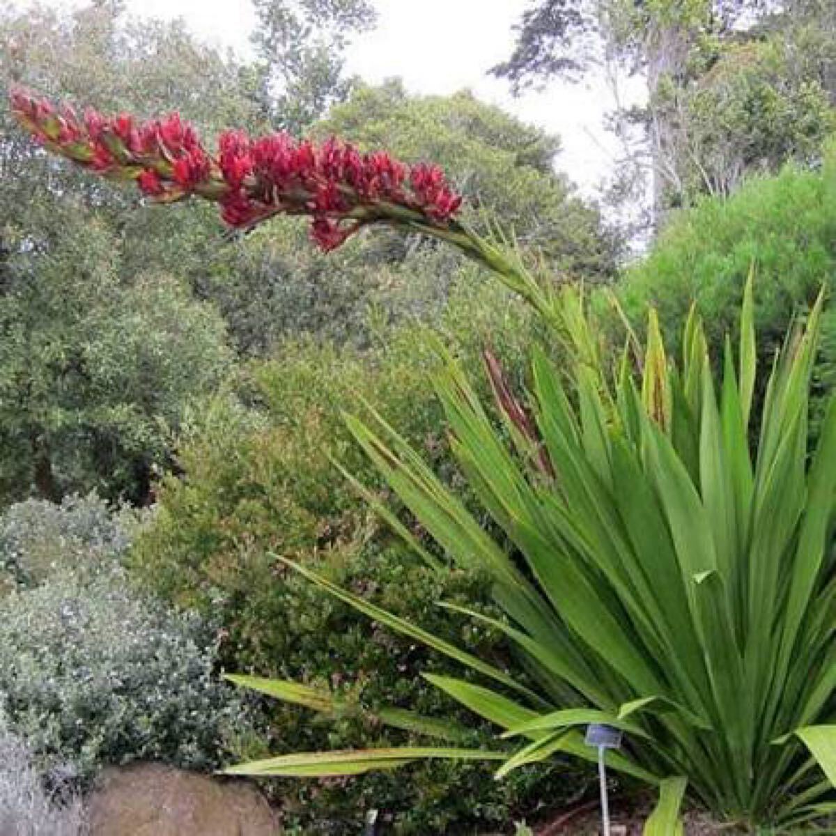 オーストラリアの特定の地域しか自生しないアガベに近縁の種。葉はロゼット状ではじめは直立し 次にアーチ状になります。開花は晩春。色は濃赤色または赤褐色です。長さ4〜6cmの花を、長楕円形で長さ1メートルの密な円錐花序につけます。花の内側は薄い赤または白色で、濃赤色の苞に囲まれています。種まきから開花までは およそ10年以上かかるといわれていて、日本では植物園でも滅多に見られない極めてめずらしい植物です。