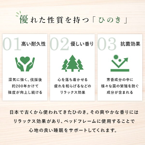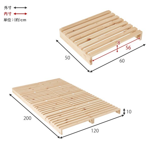 ※現在ご覧の商品ページはセミダブルのご購入ページとなります。 ヤフオクの仕様上単一ページに複数バリエーションを掲載することができませんので、他バリエーションが希望の場合は別ページでご購入お願い致します。 檜(ひのき)の香りや風合いを感じられるすのこベッド。 パレット状のすのこ板を並べるだけの簡単設置で移動や模様替えも楽々。 配達業者を指定いただくことはできません。 北海道/沖縄/離島のお届けに別途中継料金が発生します。 ※別途送料が発生する場合は後ほどご連絡させていただきます。 当店は正規店です。 タイミングによっては在庫切れの場合があります。