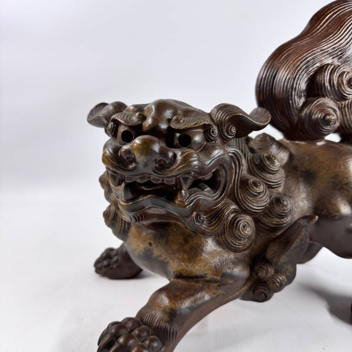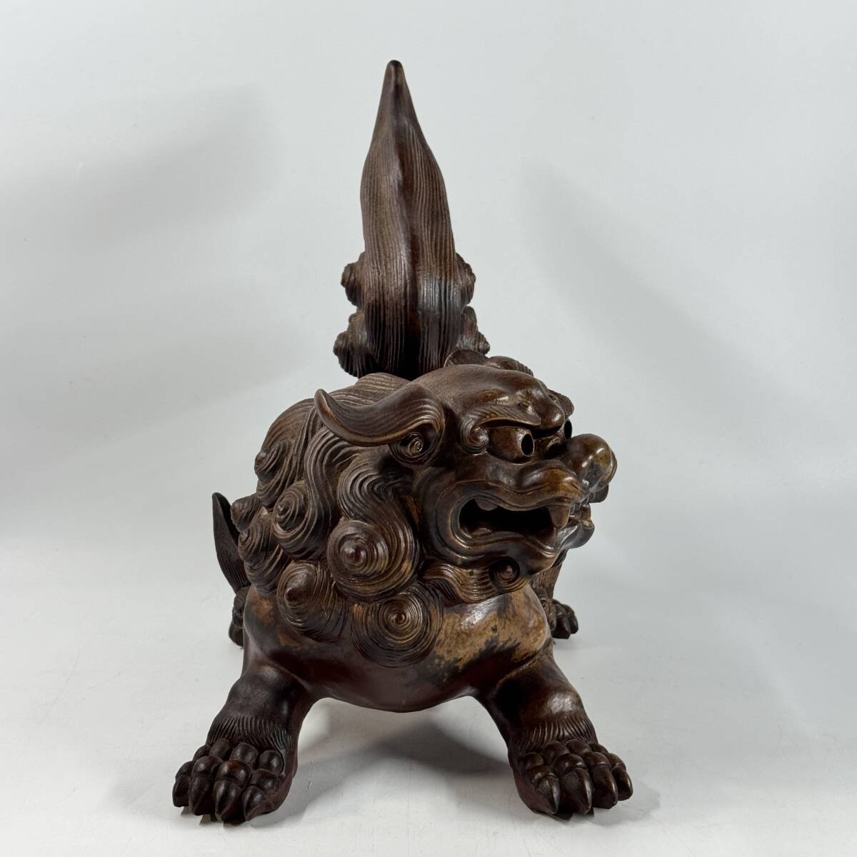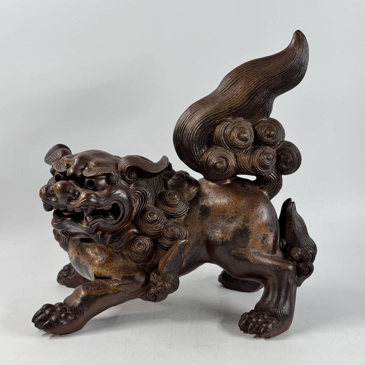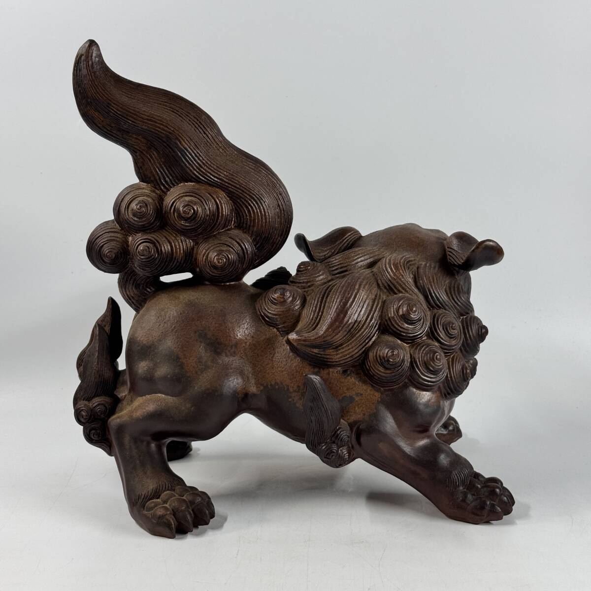 備前焼 木村陶峰 陶銘在 掻き銘 獅子飾り 縁起物 玄関飾り 置物 オブジェ 幅33㎝×奥行20㎝×高さ33㎝ 経年保管品 現状品の出品です。