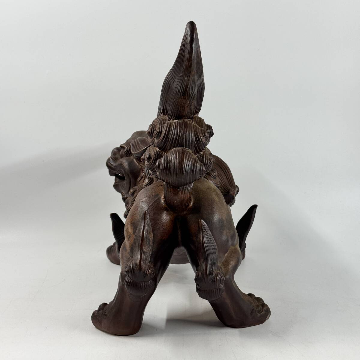 【20167Q】備前焼 木村陶峰 陶銘在 掻き銘 獅子飾り 縁起物 玄関飾り 置物 オブジェ 幅33㎝×奥行20㎝×高さ33㎝ 経年保管品 現状品