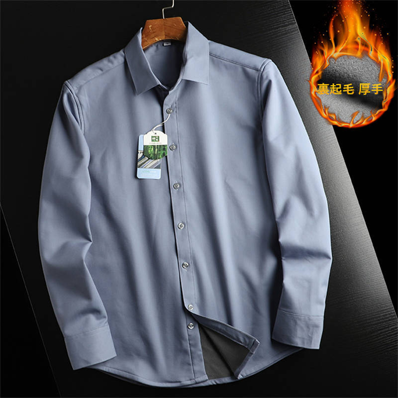 A140-2XLグレー 裏起毛 長袖シャツ メンズ 折り襟 竹繊維 ネルシャツ 新品 暖かい 紳士服 防寒 無地 厚手 ビジネス カジュアル トップス