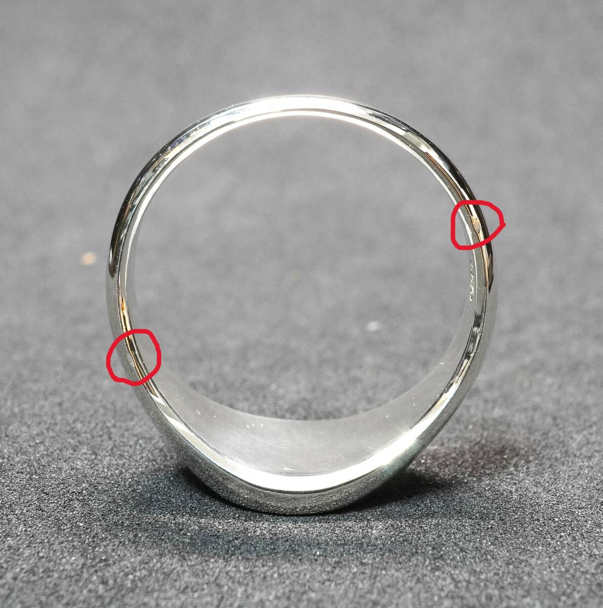 未使用品 手彫り 18号 シグネットリング シルバージュエリー 印台 指輪 SILVER925 K 手彫りの一点物になります。素材はシルバー925で鏡面仕上げになります。 サイズ 18号 トップ9.5×9.5mm 未使用保管品。特に目立ちませんが2カ所赤丸のカ所に小さなあたり傷があります。シルバー特有の変色も今のところは見られません。 ケースは付属しませんのでパケ袋に入れて保管しております。 |