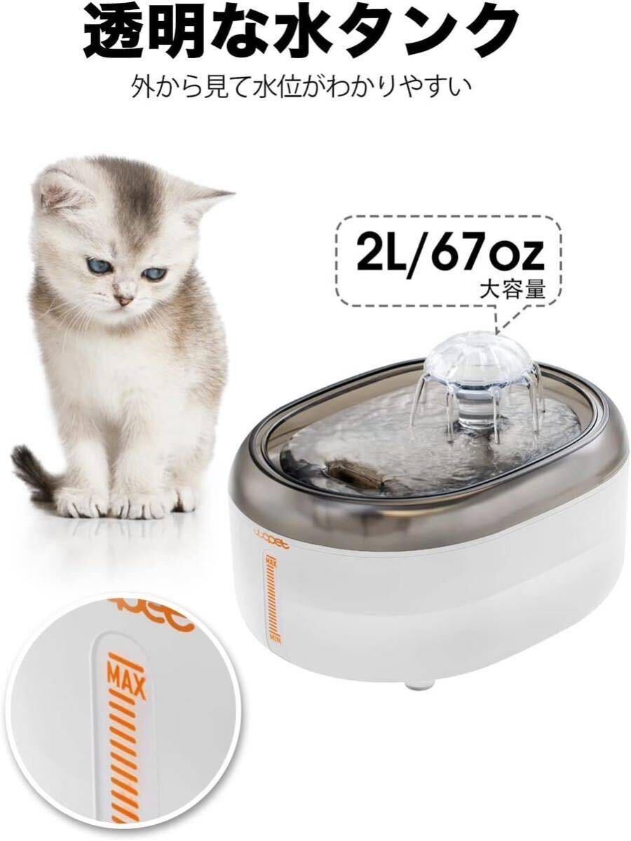 【超静音水飲み器】通常は30dBくらい超静音を実現します。ポンプや水音が気にならないほど超静音レベルで、ペットにも飼い主さんにもストレスなく毎日快適に水飲み器が使用できます。愛犬愛猫にバランス良く、健康な食生活が提供できます。