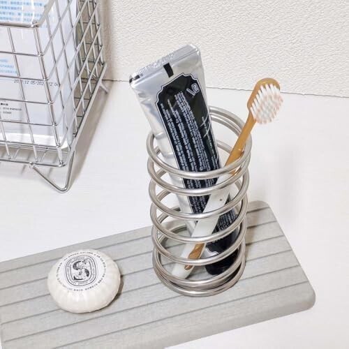 スプリングスタンド 2個セット 歯ブラシスタンド 歯ブラシホルダー メイクブラシ立て ペン立て カトラリースタンド ステンレス製 洗面所 おしゃれ 北欧風 モダン シンプル 清潔感 デスク収納 インテリア 雑貨 ギフト【NABI STYLE】