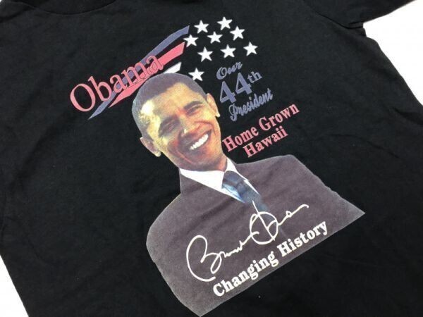 バラクオバマ Barack Obama 半袖フォトTシャツ アンビル anvil 大統領 ポートレート アメリカ オールド アメカジ メンズ S 黒