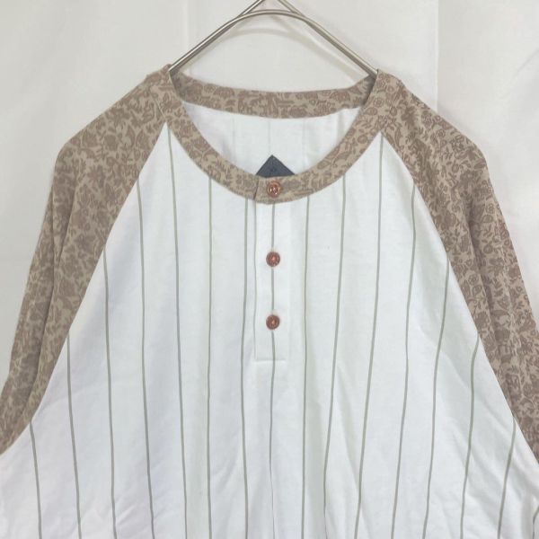 新品未使用タグ付き 個性的な総柄袖×ストライプボディが映えるラグラン七分袖シャツ - ブランド:OLD FAME - サイズ表記:S - 素材:コットン100% - カラー:ホワイト×ベージュ - シーズン:春秋 - 服の特徴:ラグランスリーブ、ピンストライプ柄ボディ、ヘンリーネック3ボタン、総柄切替袖デザイン - ダメージ・汚れ詳細:新品ですが汚れあり - 袖の長さ:七分袖 03-50 即購入大歓迎・お得な割引各種あります 詳しくはプロフィールをご覧ください! 匿名&送料無料 海外輸入のため全て一点ものです 古着のため使用感・毛玉等があることもあります。写真で状態の確認を行なってからご購入ください おまとめ買いでお得な割引あります♪ 平置き採寸表→写真から確認いただけます! (素人採寸のため、多少の誤差はご了承ください) 商品状態に関しては、写真、商品説明欄に記載しております。着用回数、購入時期などはお答えできませんので、ご了承ください。着画、写真の追加もお断りしております。 簡易包装のコンパクト発送となります。 畳みシワはご了承の程、宜しくお願いいたします。 商品によっては圧縮してお送りするものもございます。 撮影環境や使用するモニター、反映されにくい色味など、 商品と画像に若干の色誤差が生じますことをご了承ください。 出品作業の際にしっかりと確認はしておりますが、シミなどの見落としがある場合もございますのでご了承下さい。 古着の取り扱いになりますので特有の匂い等がある可能性があります。ご理解のある方のみご購入の程お願い致します。