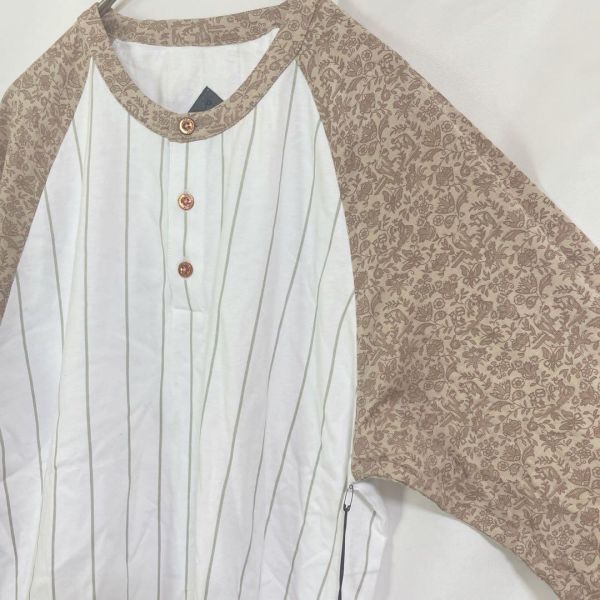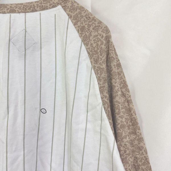 新品未使用タグ付き 個性的な総柄袖×ストライプボディが映えるラグラン七分袖シャツ - ブランド:OLD FAME - サイズ表記:S - 素材:コットン100% - カラー:ホワイト×ベージュ - シーズン:春秋 - 服の特徴:ラグランスリーブ、ピンストライプ柄ボディ、ヘンリーネック3ボタン、総柄切替袖デザイン - ダメージ・汚れ詳細:新品ですが汚れあり - 袖の長さ:七分袖 03-50 即購入大歓迎・お得な割引各種あります 詳しくはプロフィールをご覧ください! 匿名&送料無料 海外輸入のため全て一点ものです 古着のため使用感・毛玉等があることもあります。写真で状態の確認を行なってからご購入ください おまとめ買いでお得な割引あります♪ 平置き採寸表→写真から確認いただけます! (素人採寸のため、多少の誤差はご了承ください) 商品状態に関しては、写真、商品説明欄に記載しております。着用回数、購入時期などはお答えできませんので、ご了承ください。着画、写真の追加もお断りしております。 簡易包装のコンパクト発送となります。 畳みシワはご了承の程、宜しくお願いいたします。 商品によっては圧縮してお送りするものもございます。 撮影環境や使用するモニター、反映されにくい色味など、 商品と画像に若干の色誤差が生じますことをご了承ください。 出品作業の際にしっかりと確認はしておりますが、シミなどの見落としがある場合もございますのでご了承下さい。 古着の取り扱いになりますので特有の匂い等がある可能性があります。ご理解のある方のみご購入の程お願い致します。