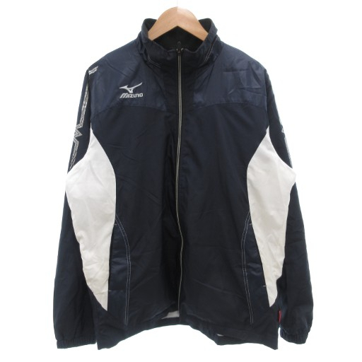 ミズノ MIZUNO ブレスサーモ ウィンドブレーカー ジャケット ジップアップ ロゴ O 紺 ネイビー 白 ホワイト /GV メンズ