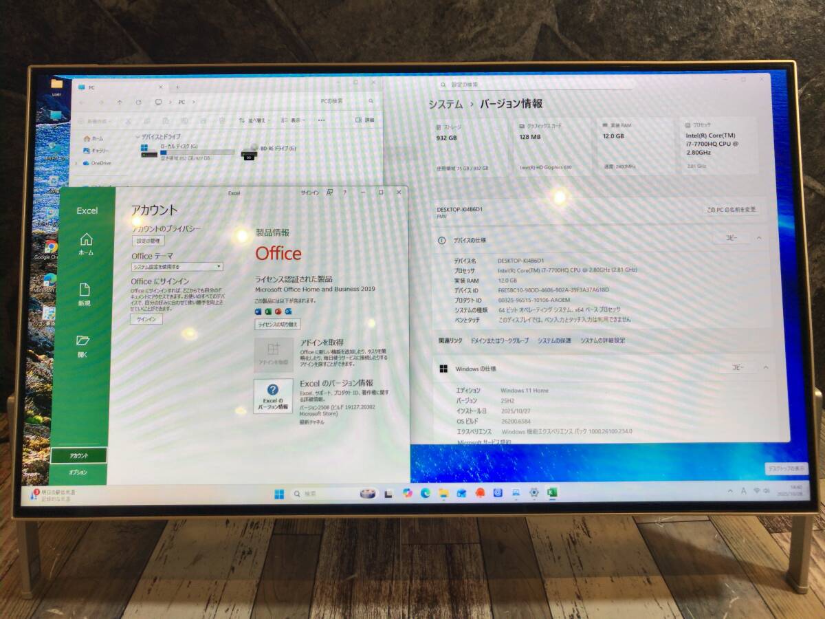 【良品/4辺挟額】ESPRIMO FH77/C2/Corei7 7700HQ 2.8G/1TB/12GB/23.8型/Win11Home/officeH&B/BDRE/A678 |