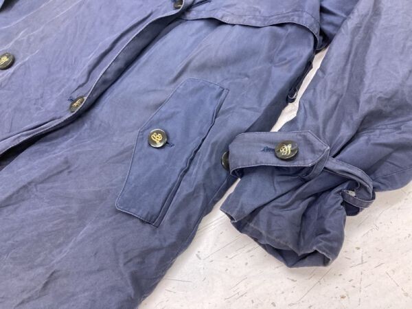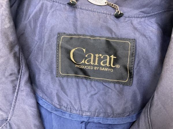 カラット Carat サンヨー SANYO レトロ トラッド モード 古着 肩パッド付き ダブル トレンチ コート レディース 絹100% 9AR 紺 です。