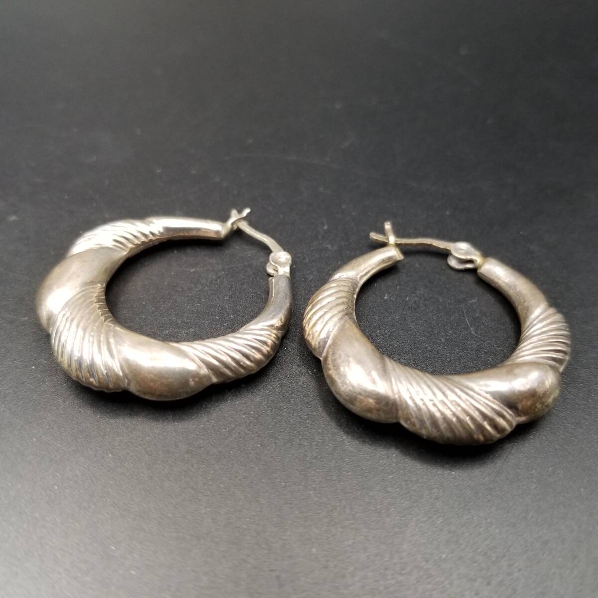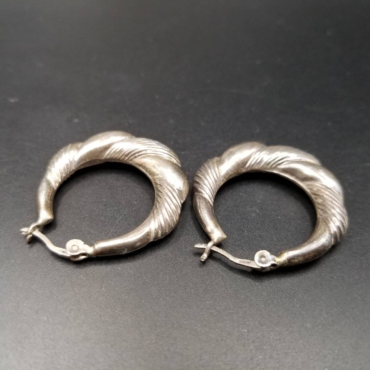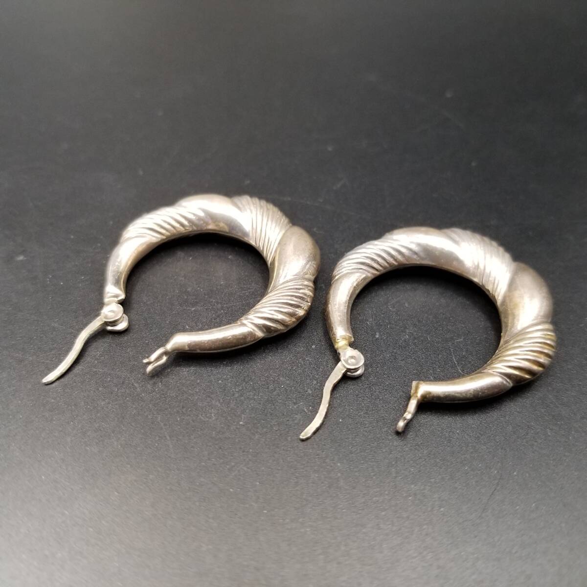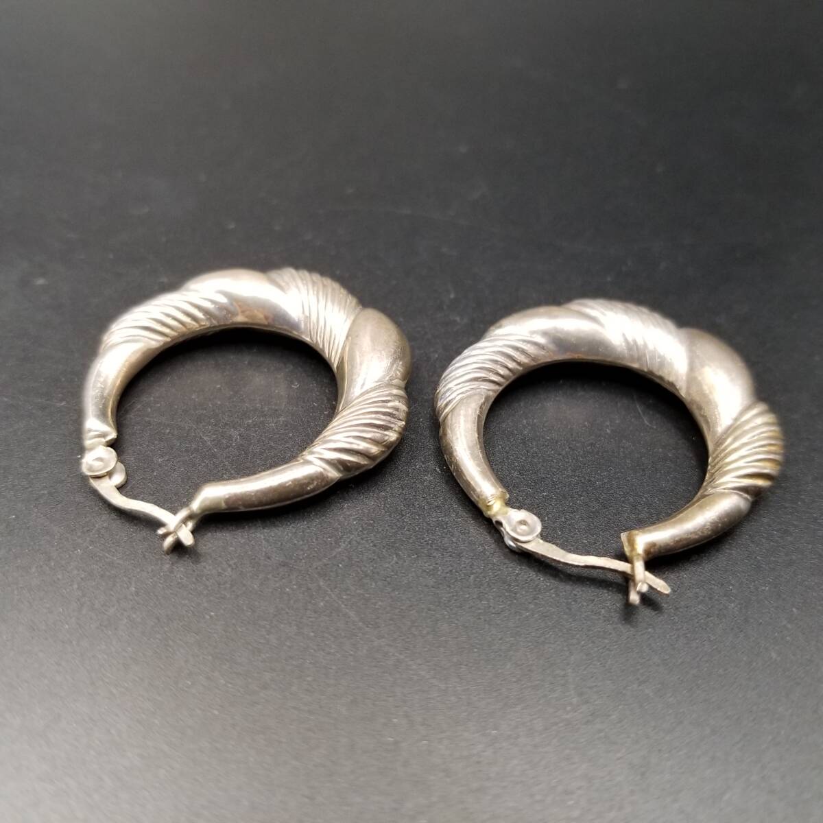 フルーテッドストライプ モコモコ お花 925 シルバー ヴィンテージ フープ ピアス 銀 大ぶり レトロ 存在感 Y25-F
