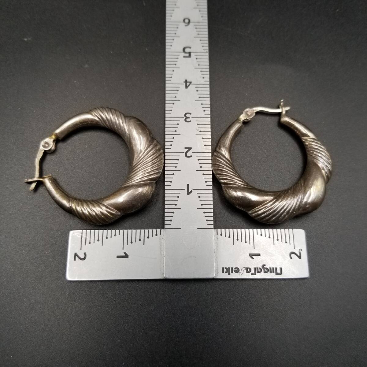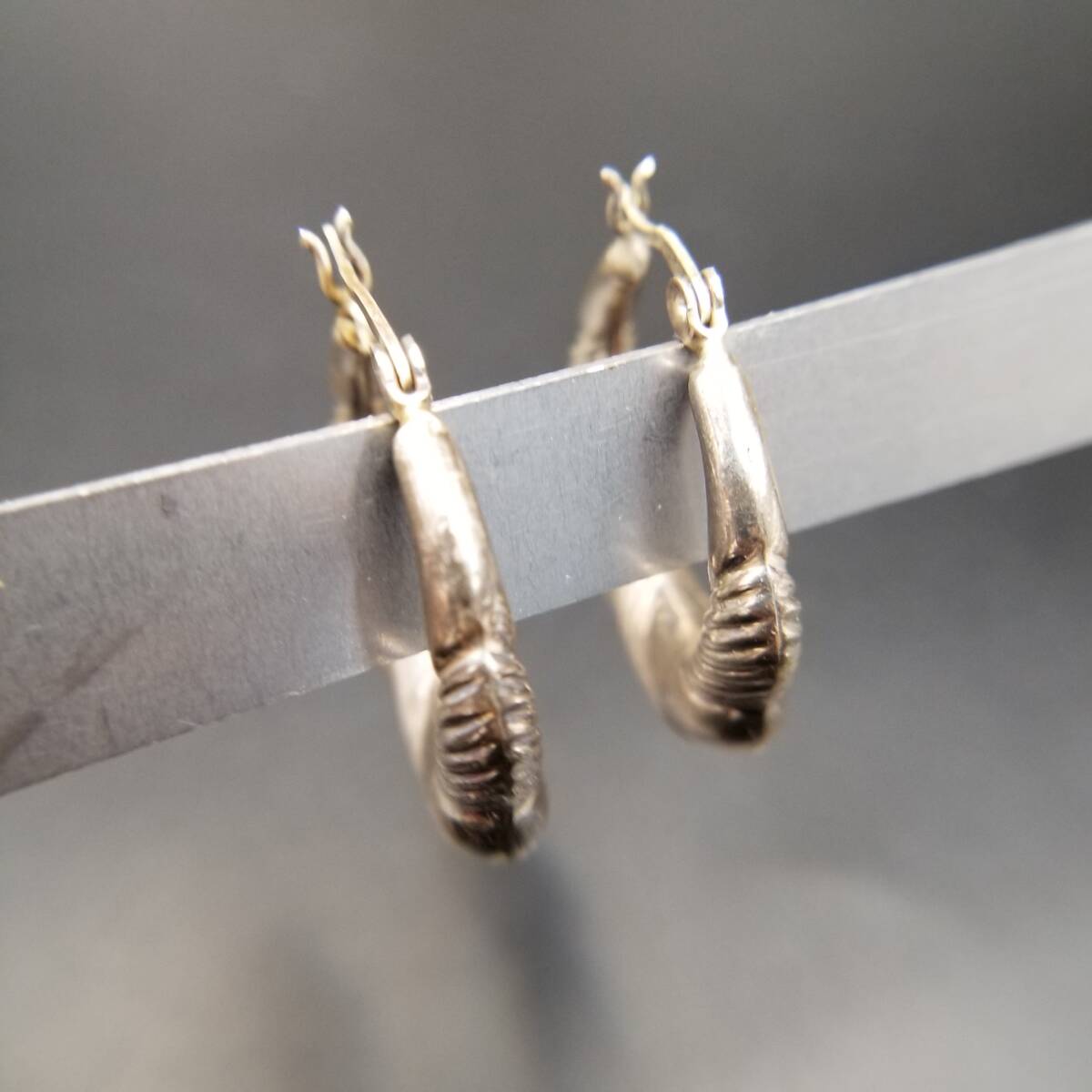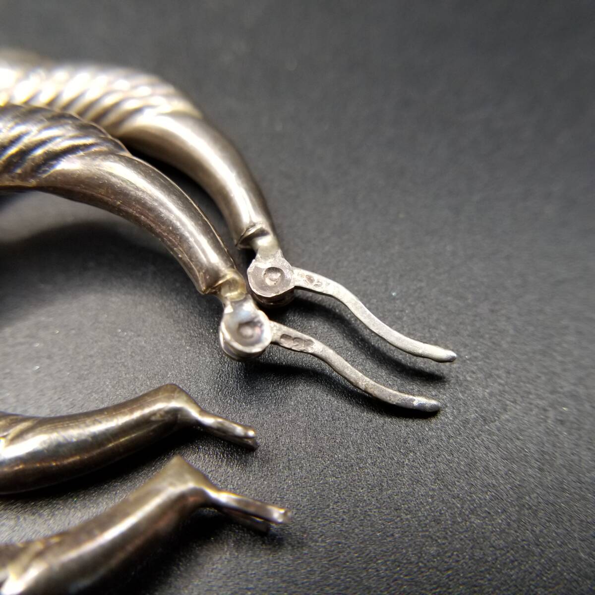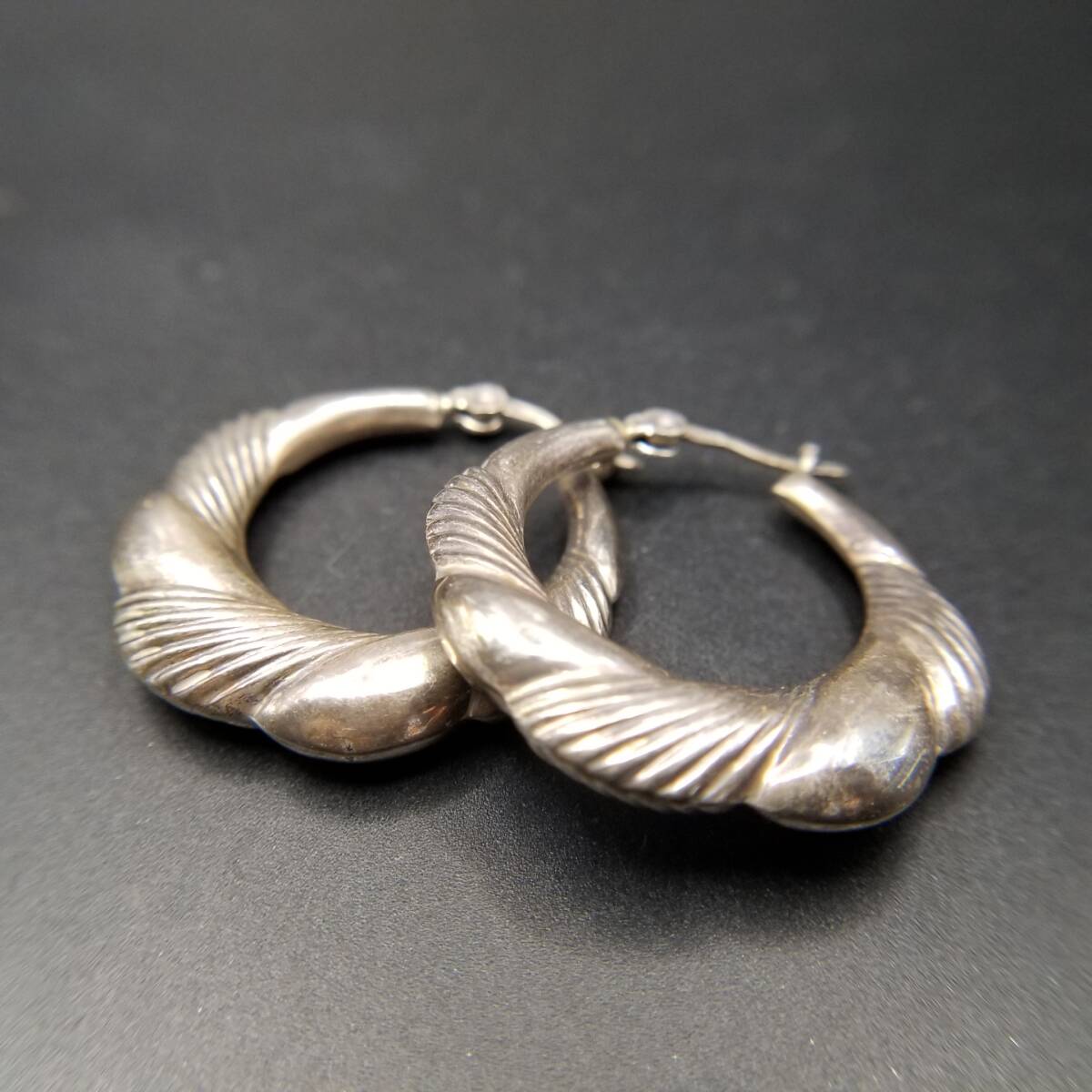 フルーテッドストライプ モコモコ お花 925 シルバー ヴィンテージ フープ ピアス 銀 大ぶり レトロ 存在感 Y25-F