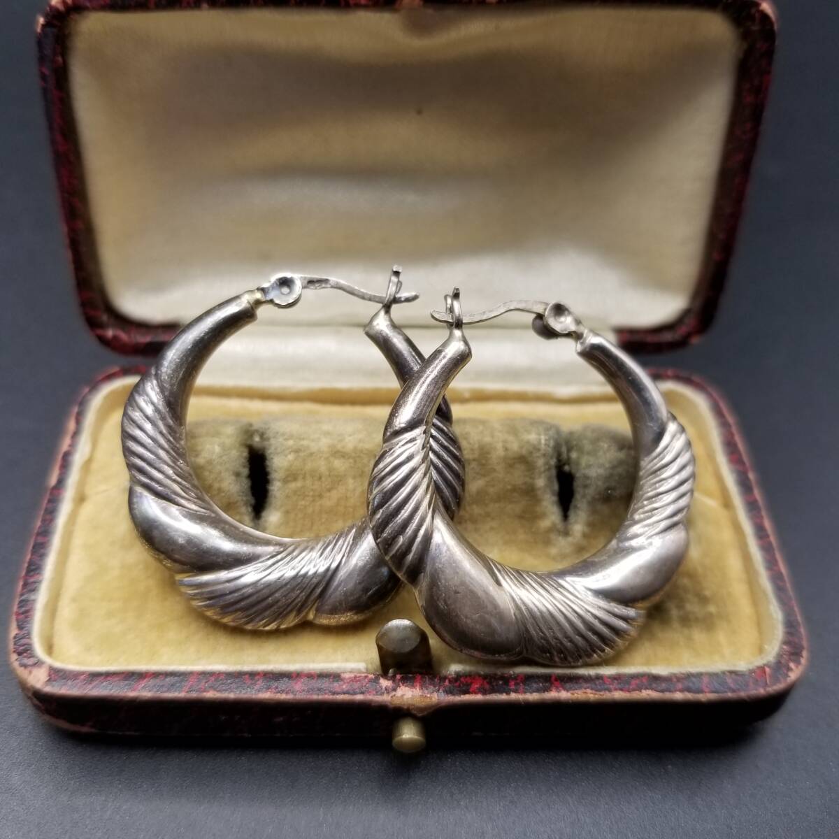 フルーテッドストライプ モコモコ お花  925 シルバー ヴィンテージ フープ ピアス 銀 大ぶり レトロ 存在感 Y25-F