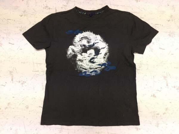 浮雲 和柄 夜空 雲 ドラゴン 龍 半袖Tシャツ メンズ コットン100% M チャコールグレー
