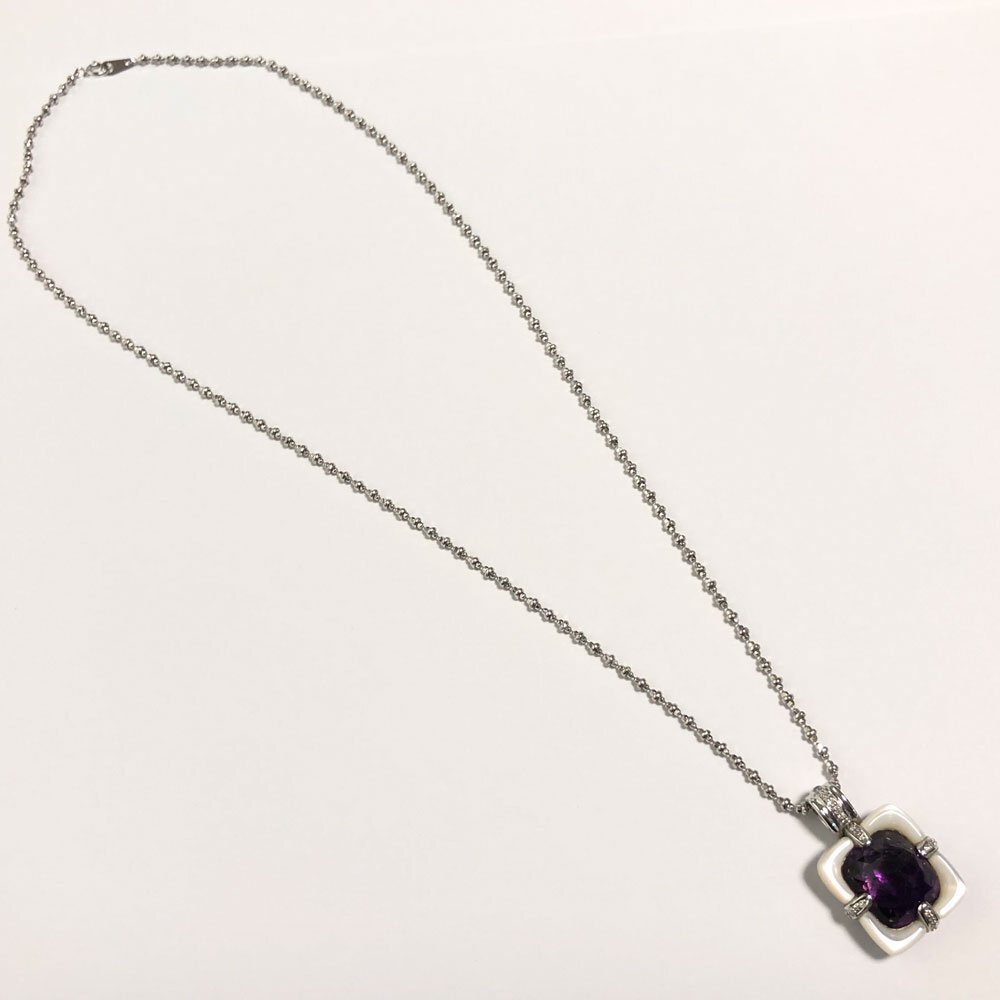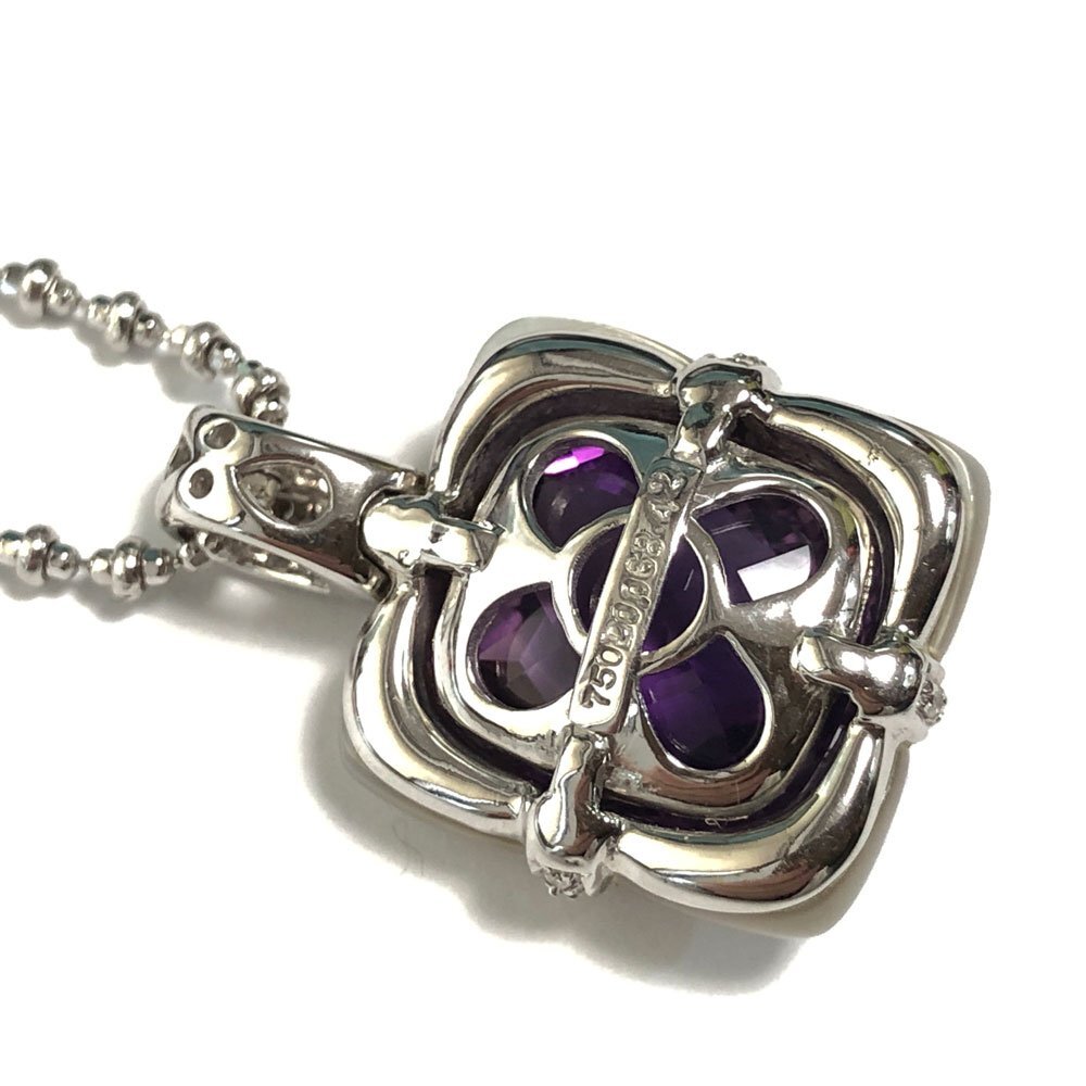 美品 K18WG アメジスト8.42ct ダイヤモンド0.068ct シェル ネックレス ペンダント ホワイトゴールド