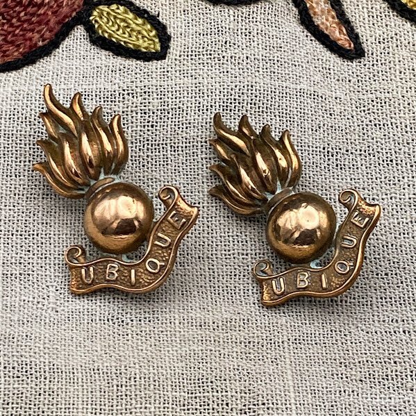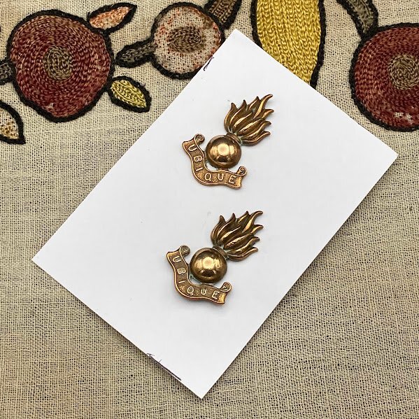イギリスから小さなパーツが届きました【44-F】こちらは2個セットです。軍の制服などのパーツとして使われていたそうです。バッグやお洋服、お気に入りの小物にワンポイントで付けてお楽しみください!古いお品のため銅や真鍮の部分には緑青がある場合がありますが、時代を感じていただきたいのでそのままにしてあります。各種販売しておりますので、まとめてご購入の場合は同梱可能です!福岡市南区の店舗にてお渡しもできますのでお気軽にどうぞ!