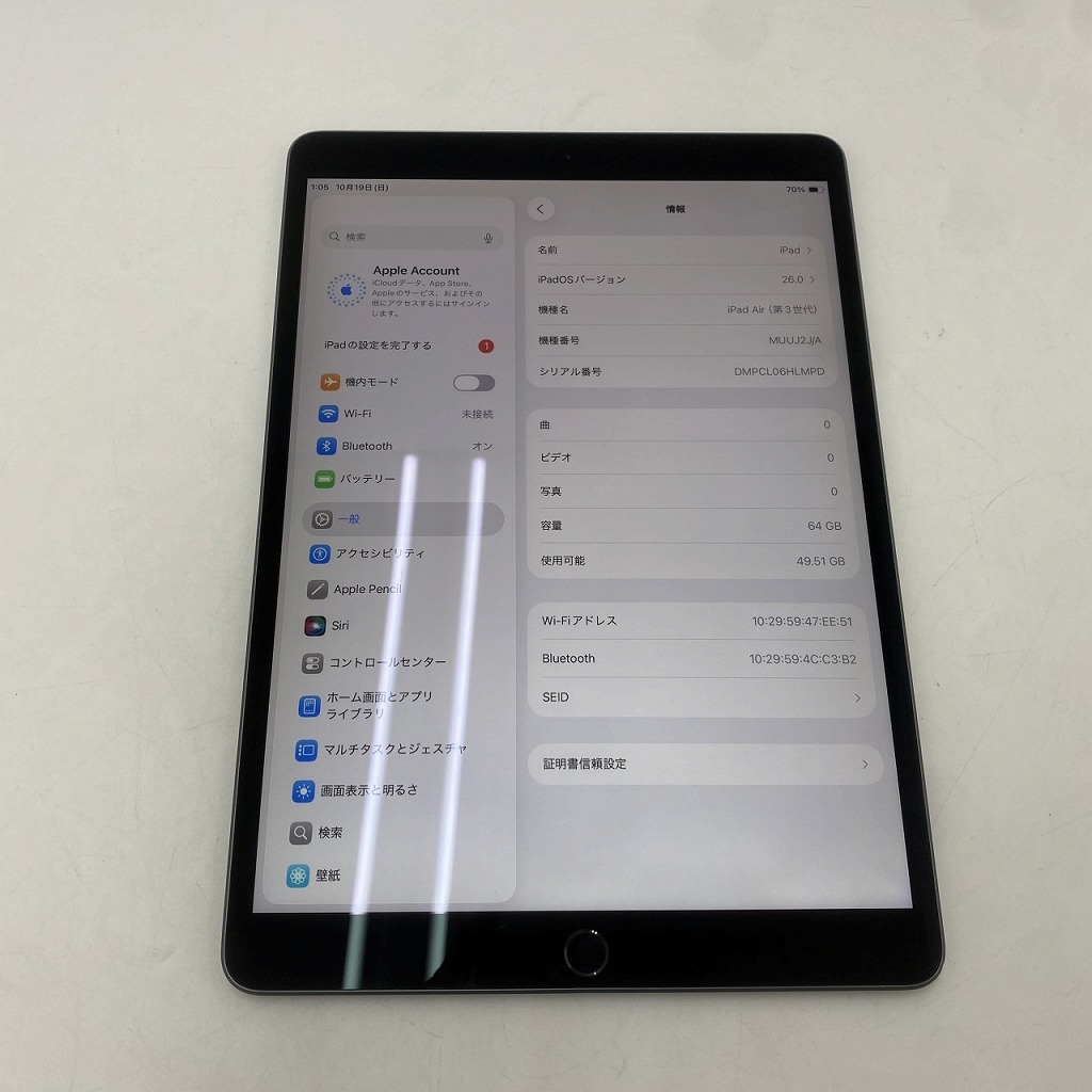 商品名iPad Air 第3世代 MUUJ2J/A Wi-Fi 64GB
