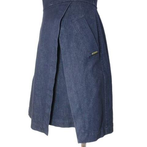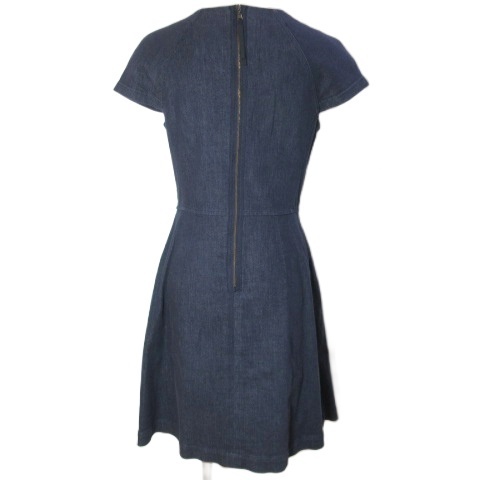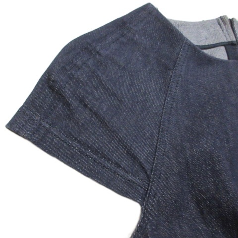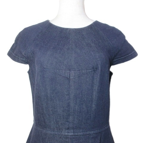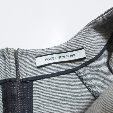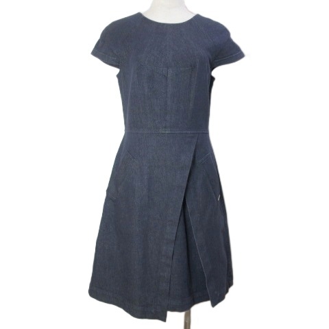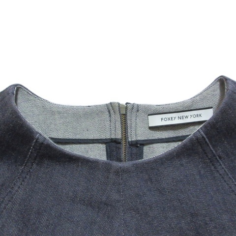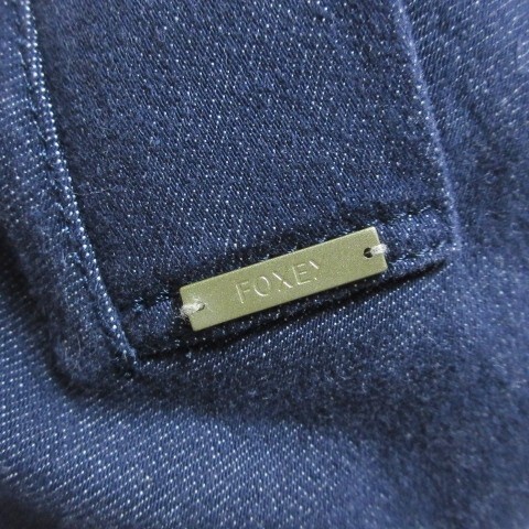 フォクシーニューヨーク FOXEY NEW YORK デニムワンピース ひざ丈 半袖 35810 フロントスリット ロゴプレート 38 S相当 紺 ネイビー /X