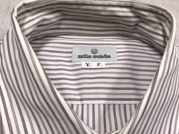 ミラショーン Mila Schon クラシック トラッド フォーマル ストライプ ボタンダウン 長袖 ドレス シャツ メンズ コットン100% 白 エンジ です。