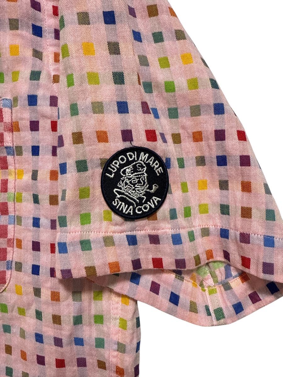 ロゴ 水兵刺繍 ワッペン チェック柄 半袖 ボタン シャツになり大変格好良くお洒落です