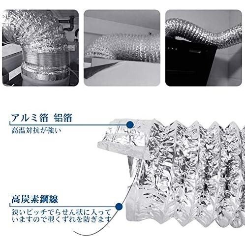 ダクトホース素材:アルミ箔(ラミネート加工)及び鋼線。