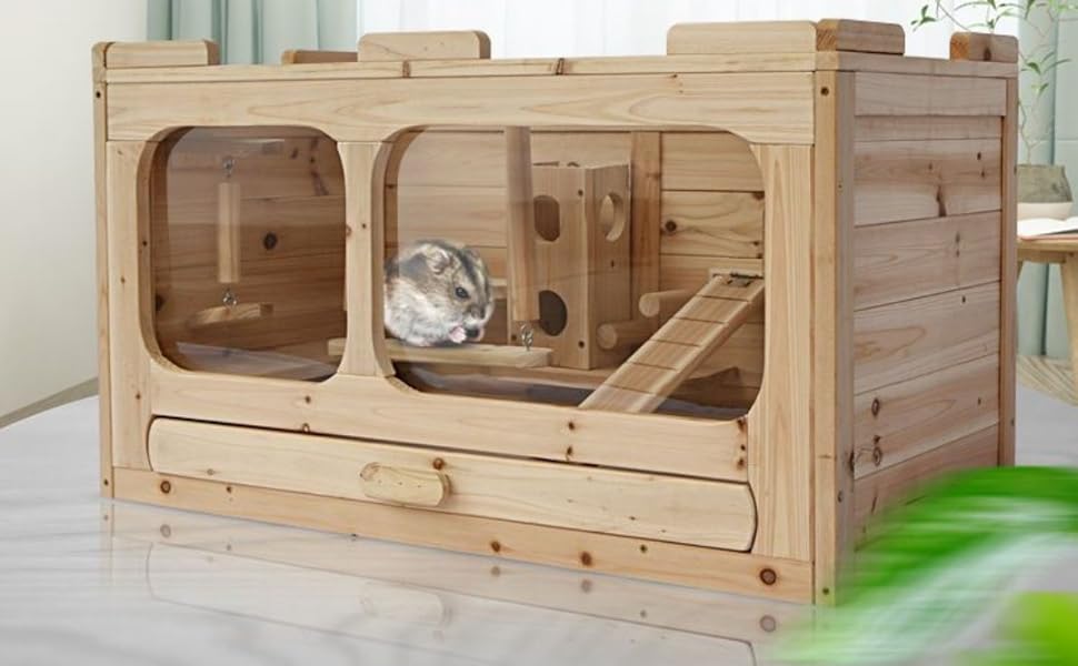 暖かい木製ハムスターケージ 製品の説明: 暖かい木製ハムスターケージは、あなたの寵愛のために快適で自然に満ちた生活空間を提供します。このハムスターケージは良質な木材を使って丁寧に作られており、美しくて丈夫で、ペットのハムスターの理想的な家です。