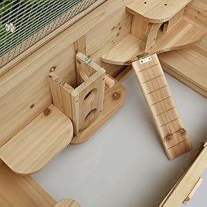 商品説明 【天然木を使う】安心素材で着色料やペンキは使用していない天然木の小動物ケージで、安全安心で、ペットの健康成長によいです。 【スペースが大きい】大きさ違いのコーナーステージとスロープ、ロフトなどが付いているので、上下運動に好きなハムちゃんに最適です