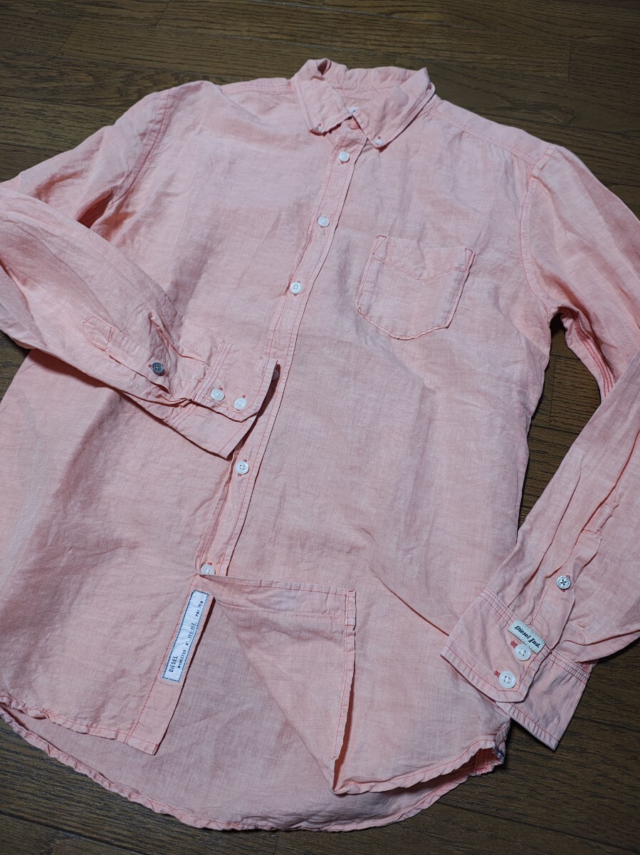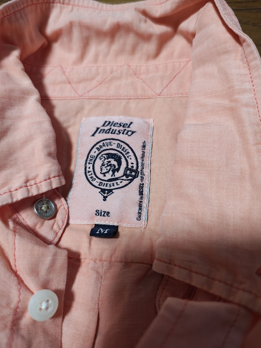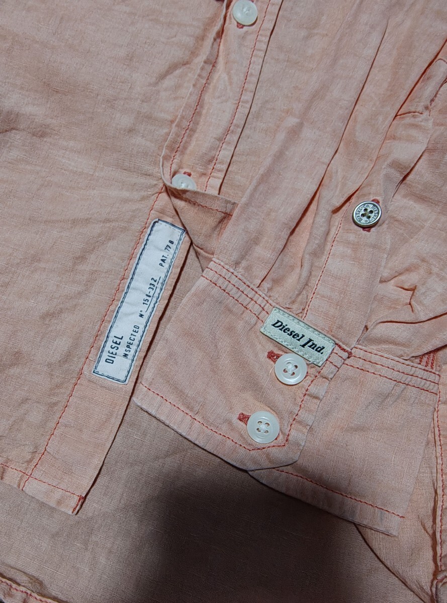 DIESEL ディーゼル リネン混 ボタンダウン長袖シャツ 胸ポケット メンズ サイズM マチ付き モヒカン/ブレイブマン ディーゼルジャパン