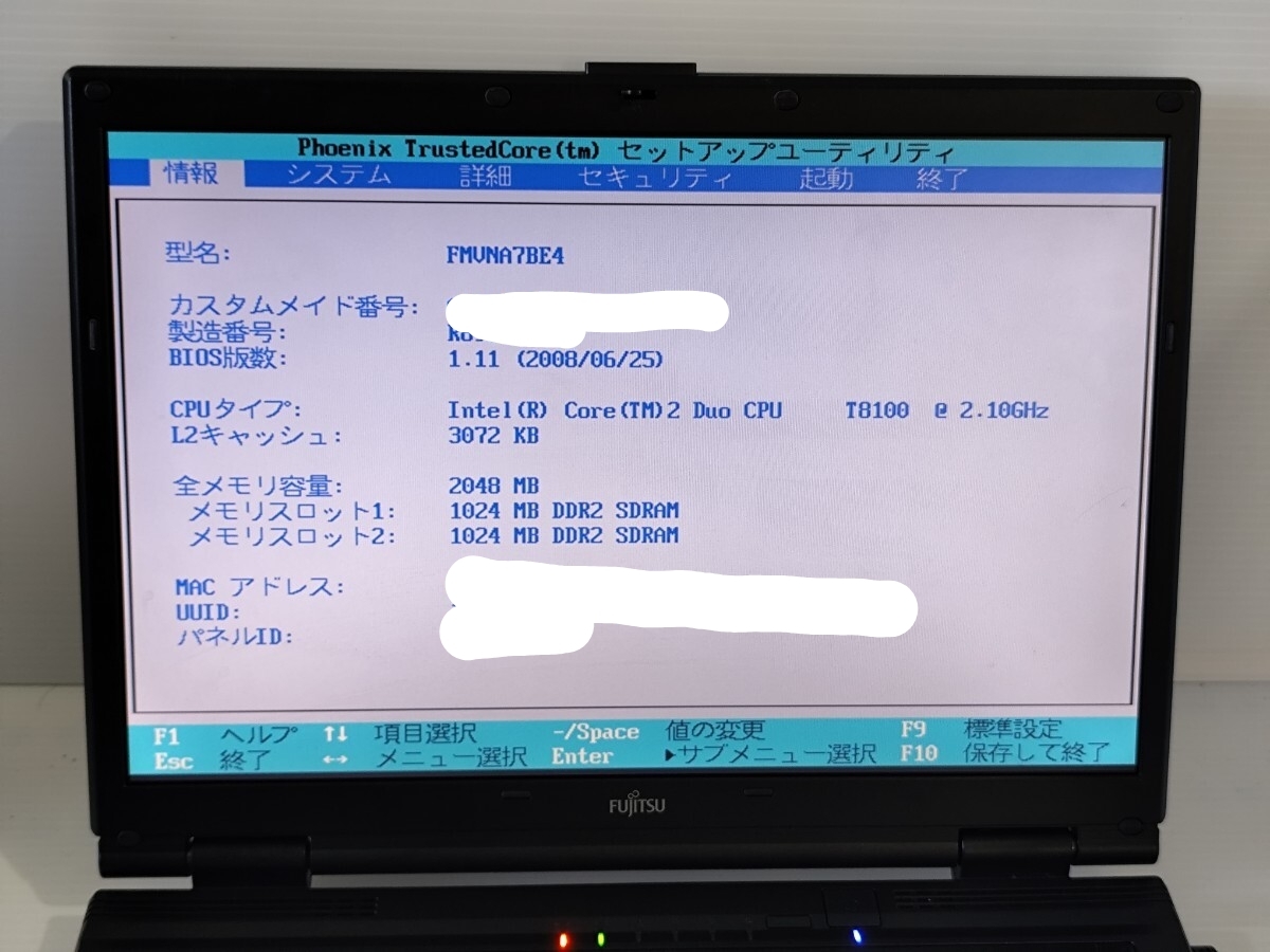 y1254 FUJITSU LIFEBOOK FMV-A8260 C2D T8100 2008年頃 ジャンク