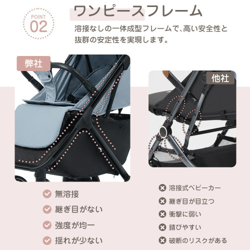 • 6.【ワンピースフレーム】溶接なしの一体成型フレームで、高い安全性と抜群の安定性を実現します。
