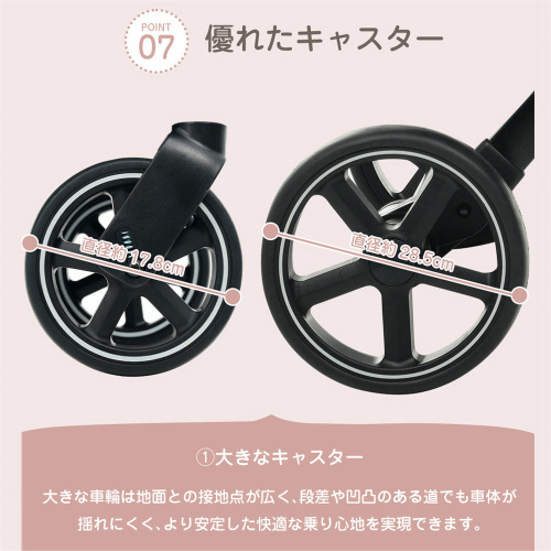 • 5.【キャリバッグのように楽々引ける】キャリーバッグのように車体を傾けて引くことができるので、抱っこ中の移動もラク。ママ・パパの負担を大幅に軽減します。